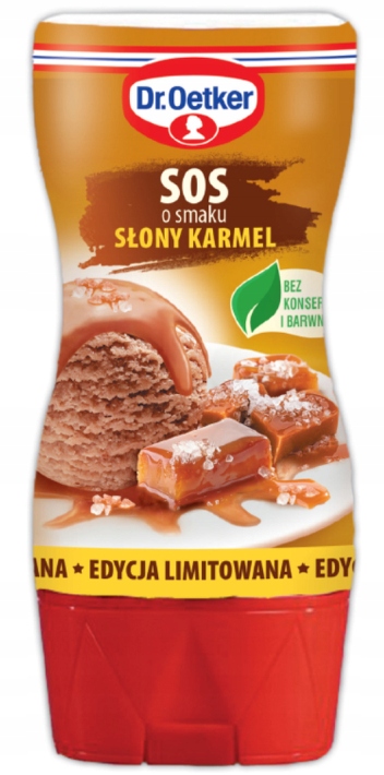 Со вкусом «Соленая карамель» прекрасно дополняет выпечку и десерты. Вот почему Др. Oetker представляет ограниченную серию десертного соуса «Соленая карамель». Простая и вкусная добавка к мороженому, вафлям, блинам, пудингам и тортам. Ищите в магазинах и пробуйте вкус этого сезона!
