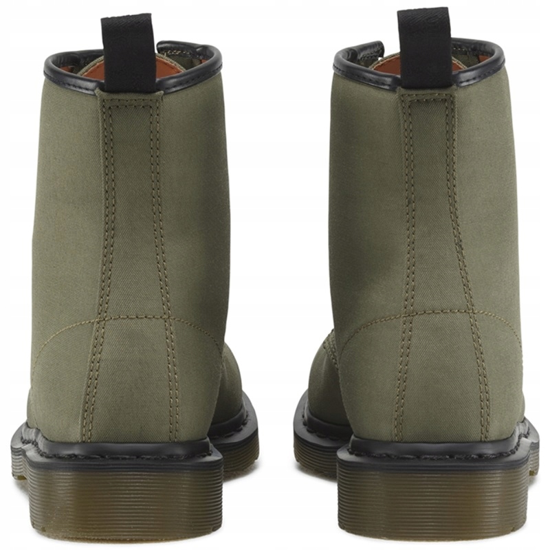 Оригинальные ботинки из коллекции обуви Dr. Док Мартенс. Шнуровка с восемью отверстиями. Изготовлен из плотного холста зеленого цвета (хаки) с пропиткой, с внутренней стороны подкладка из натуральной кожи оранжевого цвета. Подошва пришита к верху обуви знаменитой в этой модели черной нитью (технология Goodyear Welted). Подошва имеет так называемую характеристику обуви Dr.Martens. воздушная подушка. АВИАТОР (ЦВЕТА ПО МОДЕЛЮ КУРТОК АМЕРИКАНСКИХ ПИЛОТОВ)