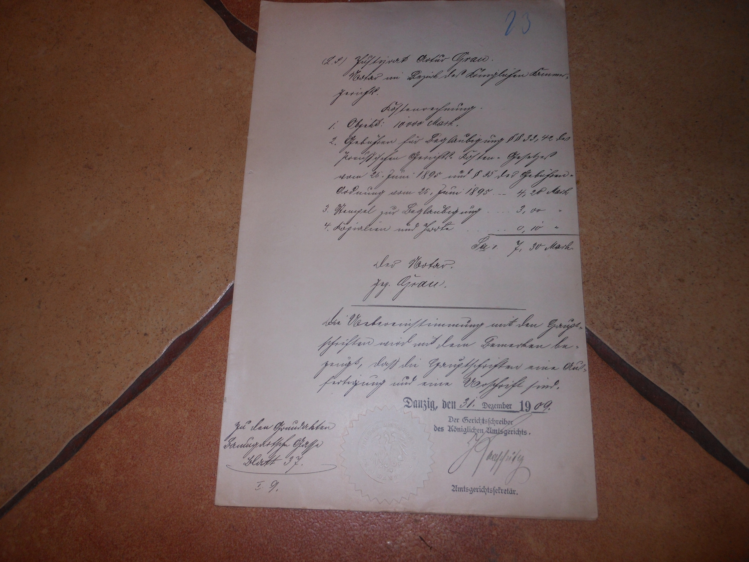 DOKUMENT DANZIG GDAŃSK Z SUCHĄ PIECZĘCIĄ 1909