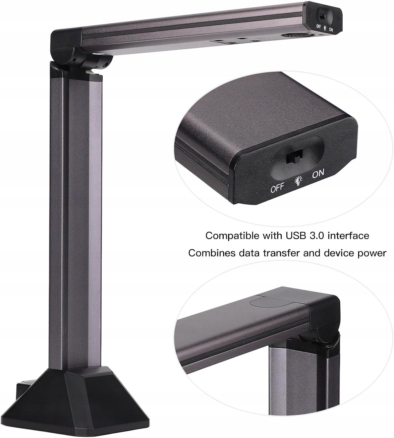 ФУНКЦИИ ПОДДЕРЖКИ Сканер для документов поддерживает цветное сканирование, черно-белое сканирование, сканирование в оттенках серого, объединение лицевой и обратной сторон документа, редактирование изображений, управление изображениями. Захваченное изображение не имеет видимого мерцания. МАТЕРИАЛ АЛЮМИНИЕВОГО СПЛАВА Документ-камера с использованием перекладины из алюминиевого сплава и иерархии форм спортивного автомобиля, которая красива и впечатляет. Разместите портативную компактную базу, сэкономьте место на USB-камере для документов с разрешением 5 МП и датчиками CMOS. 5 МП для более четкой съемки живых изображений. Встроенная светодиодная подсветка позволяет снимать изображения как в темных, так и в ярких условиях с большей дальностью действия и лучшим световым эффектом в ПОРТАТИВНЫЙ Верхний сканер имеет высококачественный алюминиевый корпус. Он складной и портативный, просто подключите сканер к компьютеру с помощью USB-кабеля и установите соответствующее программное обеспечение для правильной работы сканера. Поставляется с программным обеспечением. Поддерживается ручная и автоматическая регулировка баланса белого. Поддерживается ручной и автоматический контроль экспозиции. . Изображение без искажений. С регулировкой яркости, регулировкой насыщенности, регулировкой экспозиции, регулировкой резкости