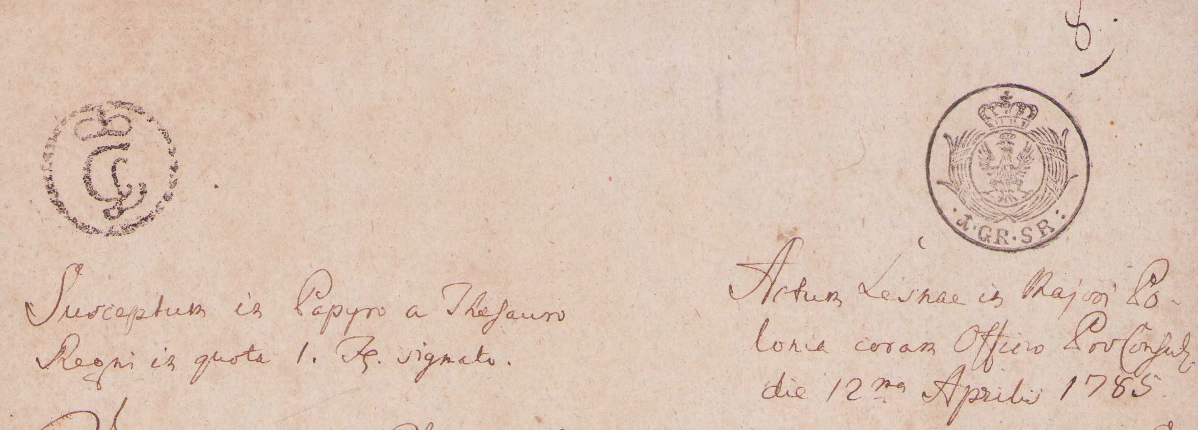 Документ міста ЛЕШНО (Лісса) 1785 року
