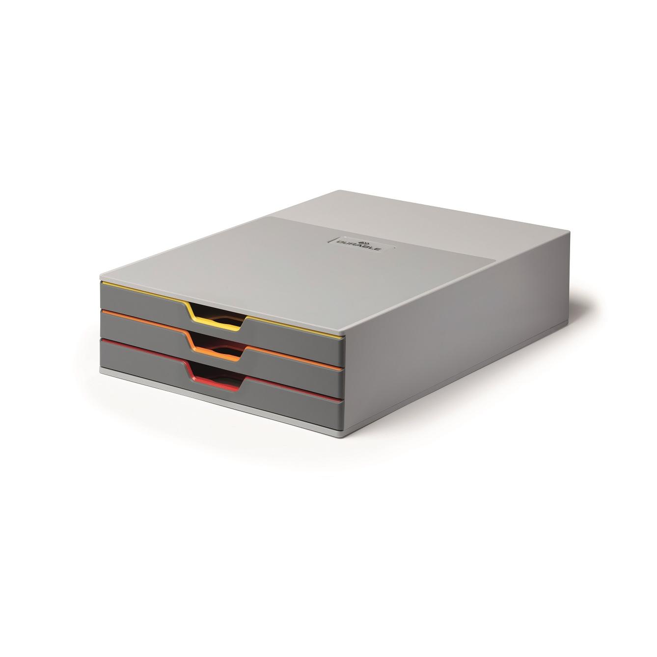 Стильный и инновационный контейнер с 3 красочными ящиками с Высококачественный пластик. Тонкие красочные линии на краях Фронты ящиков полезны при заказе документов.