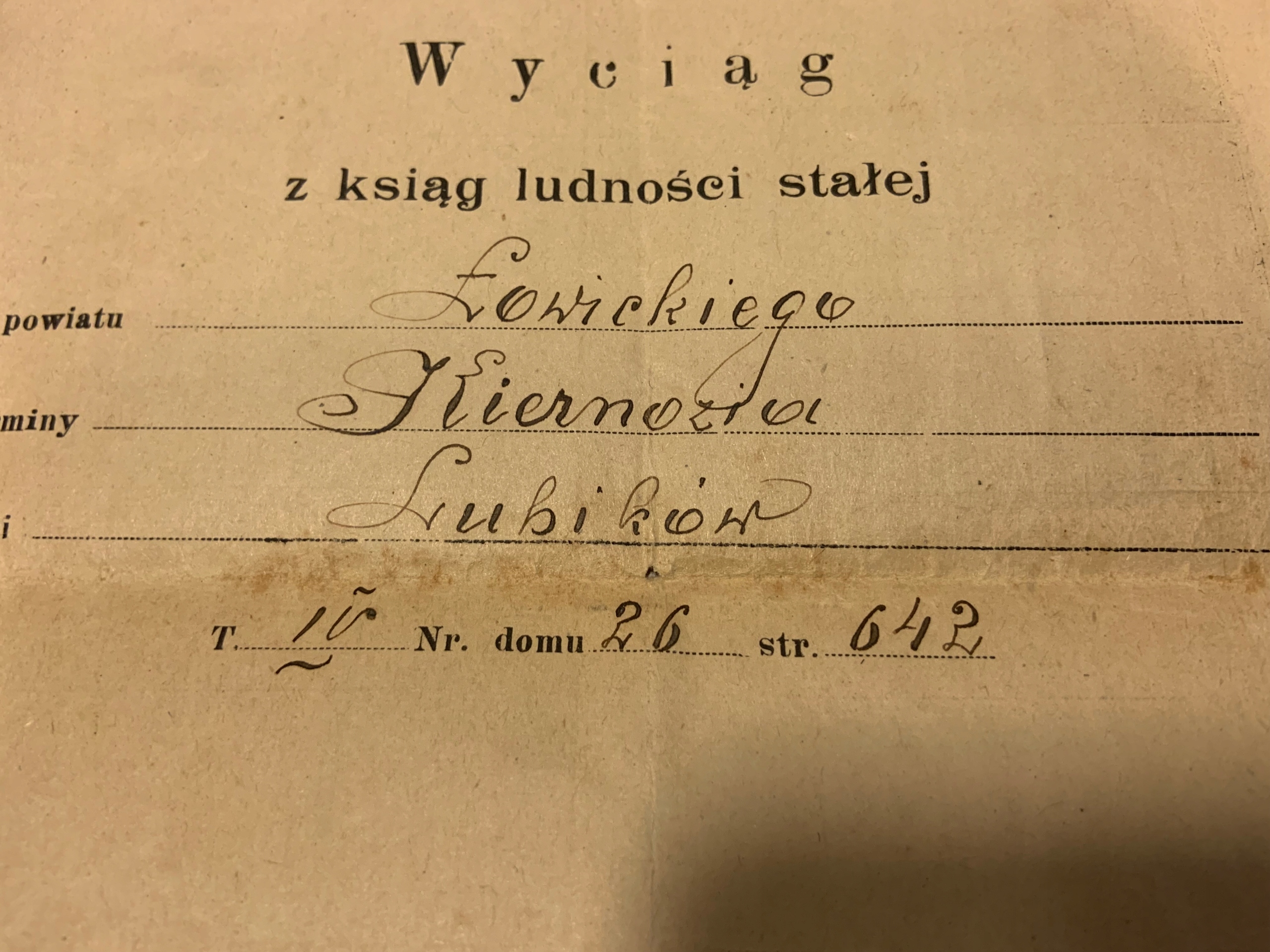 ДОКУМЕНТ З КНИГ НАСЕЛЕННЯ ЛОВИЦЬКОГО ПОВІТУ 1924 Р.
