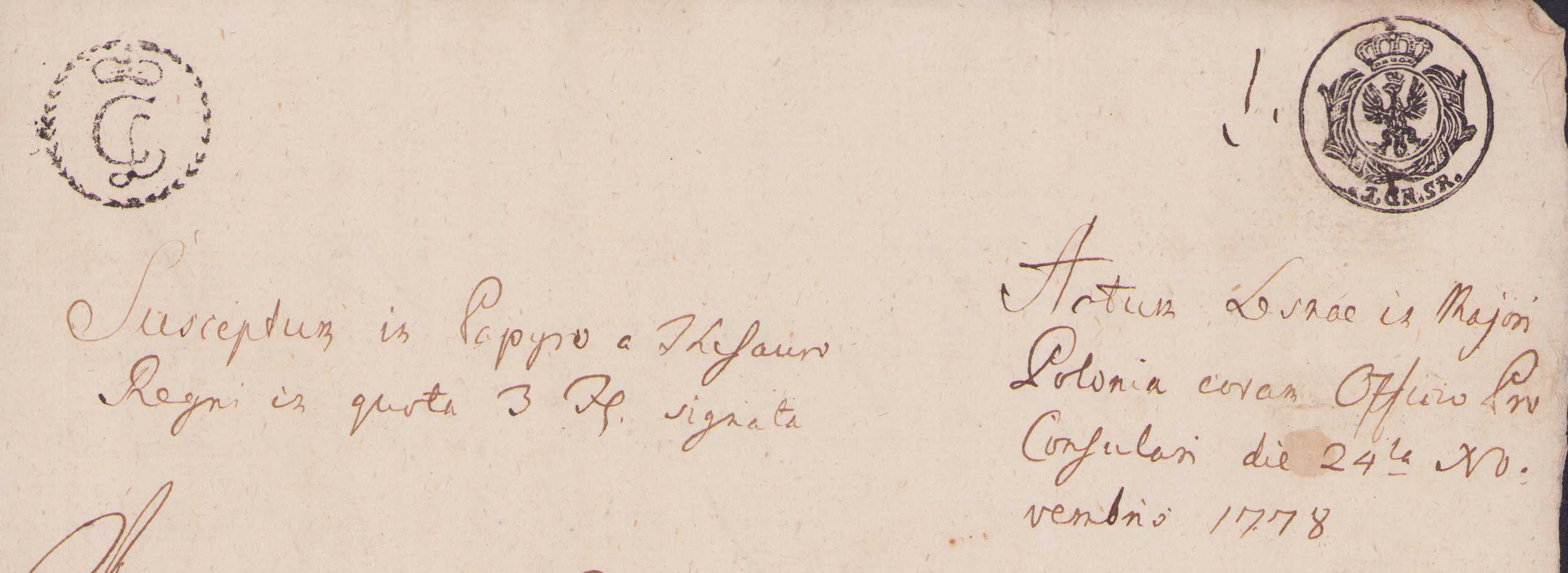 Документ с перстнями города ЛЕШНО, 1778 г.