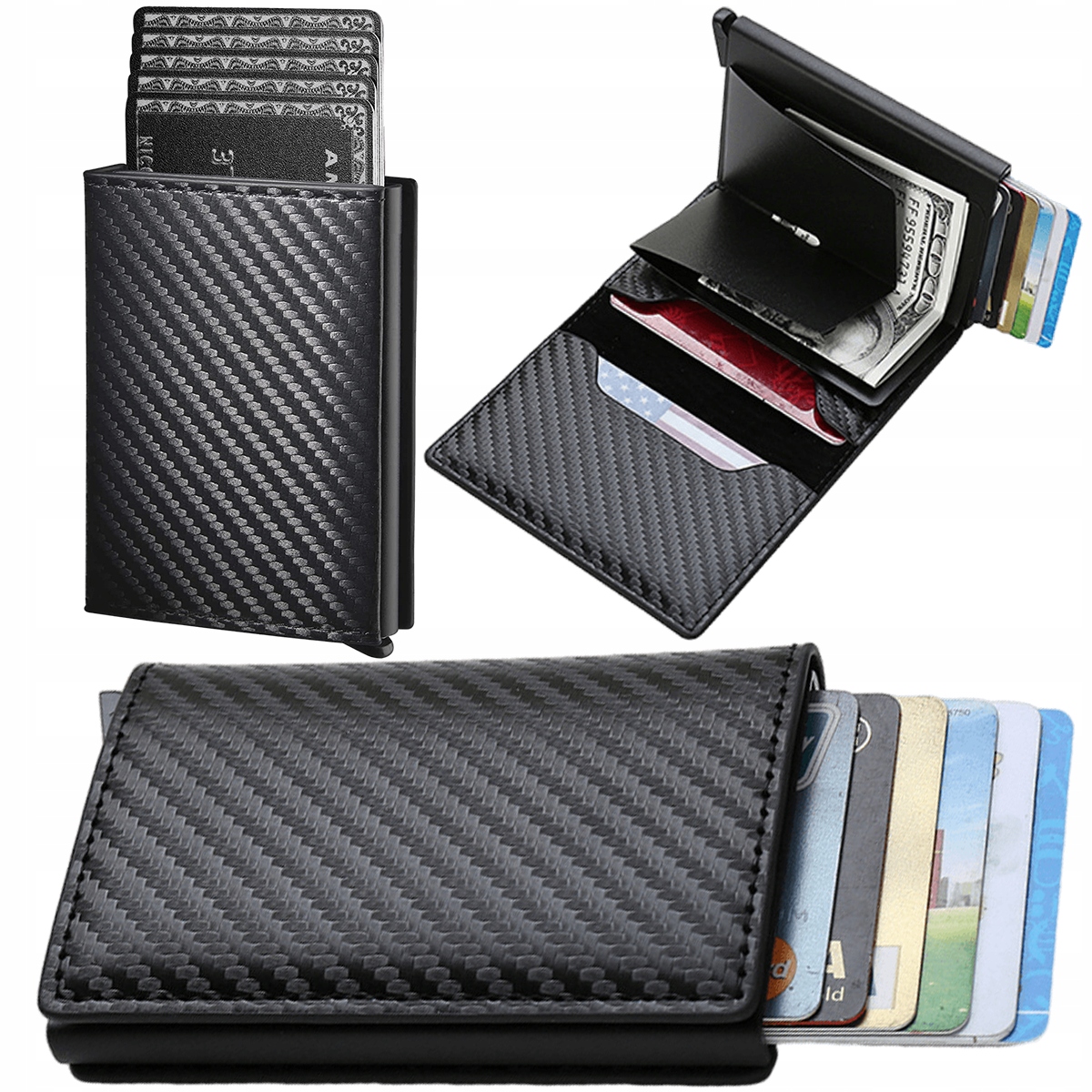 Алюминиевая часть вмещает 5 карт благодаря быстрому доступ к POP UPвы можете легко вытащить карты. Просто сдвиньте кнопку, и вы получите аккуратно всплывающие карточки. Карты хорошо лежат в футляре и не выпадают, а в кошельке есть еще 3 дополнительных отделения для хранения наличных. Фактическая емкость кошелька зависит от толщины хранимых документов, что позволяет адаптировать его к индивидуальным потребностям пользователя.