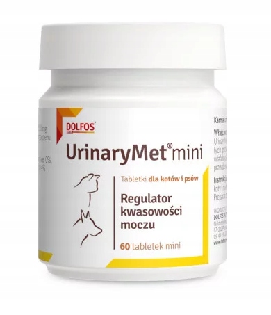 Использование по назначению: UrinaryMet mini содержит L-метионин. L-метионин обладает подкисляющими мочу свойствами, которые ограничивают повторное образование струвитных камней. Струвитные камни, то есть фосфатно-аммонийно-магниевые камни, образуются в щелочной моче. UrinaryMet mini можно применять у кошек и маленьких собак с рецидивирующими заболеваниями нижних мочевыводящих путей. Состав: Добавки в 1 мини-таблеткеДиетические добавки: L-метионин 250 мг