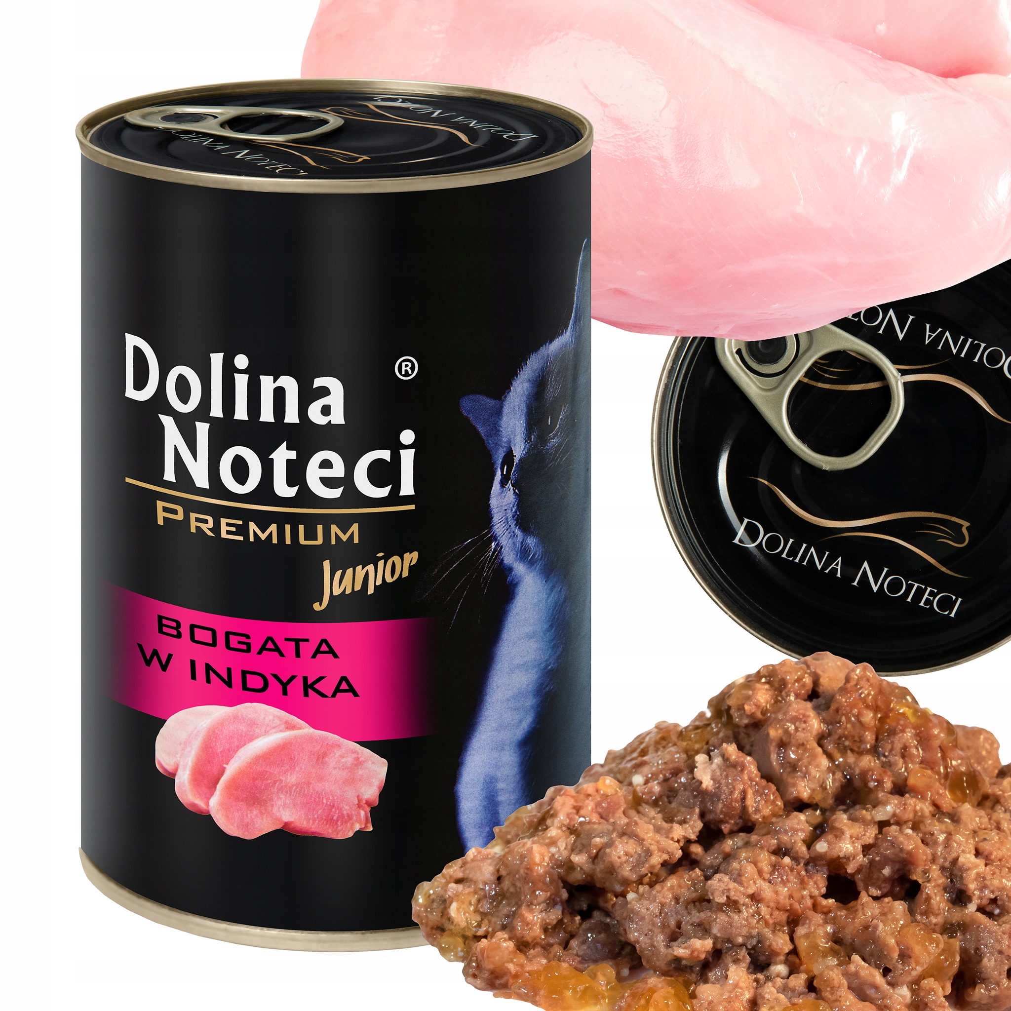 Влажный корм для кошек Dolina Noteci Premium Junior, с высоким содержанием индейки, банка 400 г