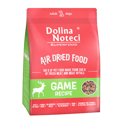 Dolina Noteci SUPERFOOD— полноценный сухой корм с олениной, предназначенный для всех собак независимо от породы и размера. Для создания 100 г готового продукта было использовано по 200 г свежего мяса дичи, говядины, курицы и свинины. Благодаря процессу сушки сохраняется большая часть свойств свежих ингредиентов, используемых в производстве. Основные ингредиенты, содержащиеся в пище: