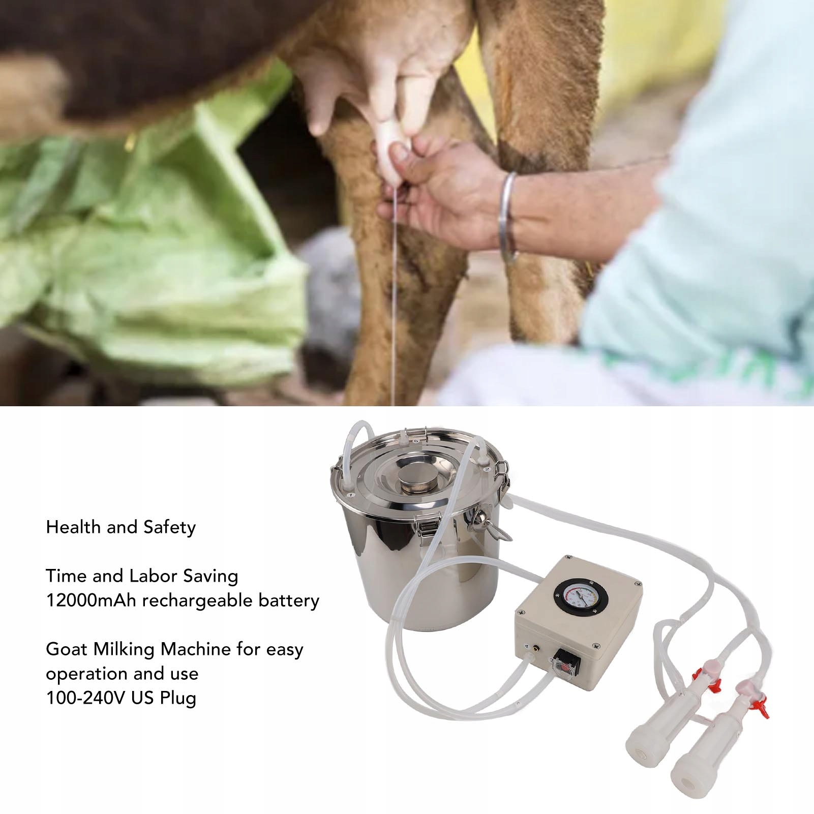 3. Безопасность и безопасность: каждая часть доильного аппарата изготовлена из высококачественных материалов, силиконовый шланг пищевого качества, здоровый и экологически чистый, нетоксичный и не впитывающий влагу.