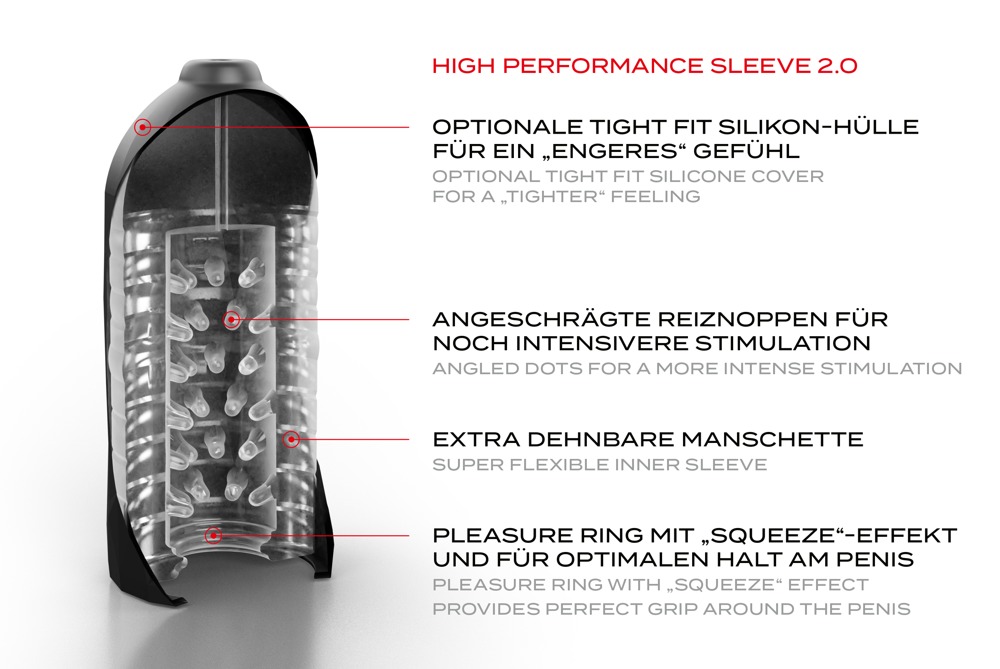 Сильные всасывающие импульсы заставляют мягкий гибкий рукав автоматически и ритмично перемещаться вверх и вниз по пенису. способ.