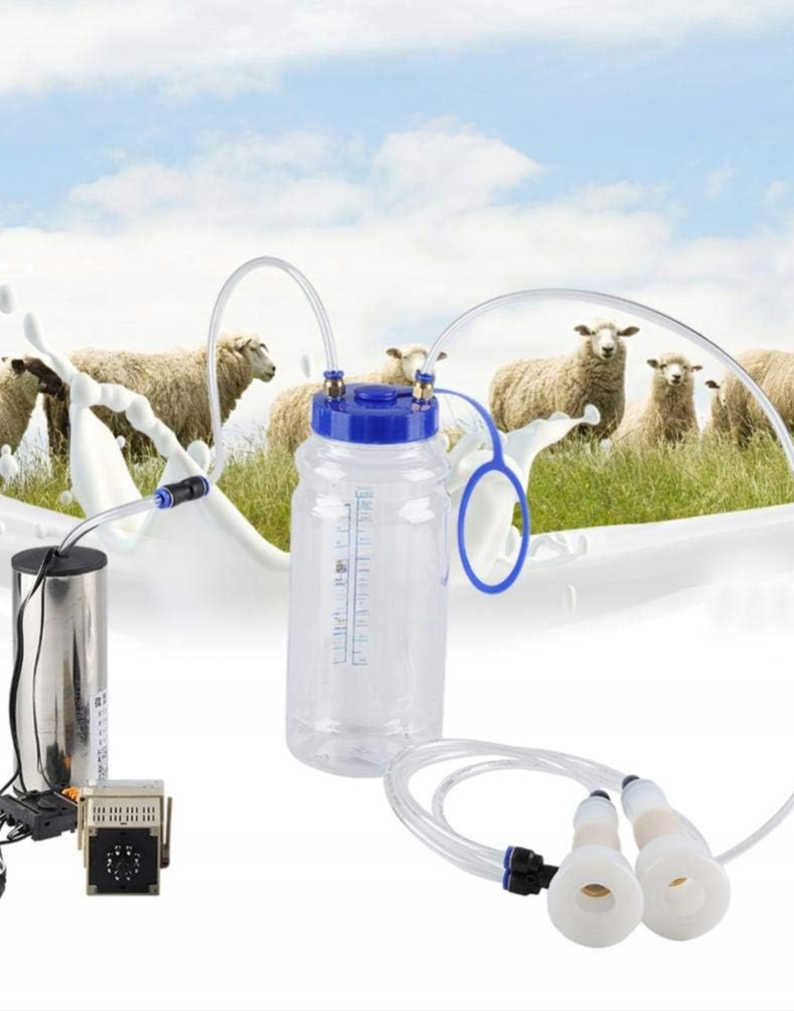 ЭЛЕКТРИЧЕСКИЙ ВАКУУМНЫЙ ДОИЛЬНЫЙ АППАРАТ 2 Л ДОИЛЬНЫЙ НАБОР ПОРТАТИВНЫЙ ДЛЯ КОЗ, КОРОВ
