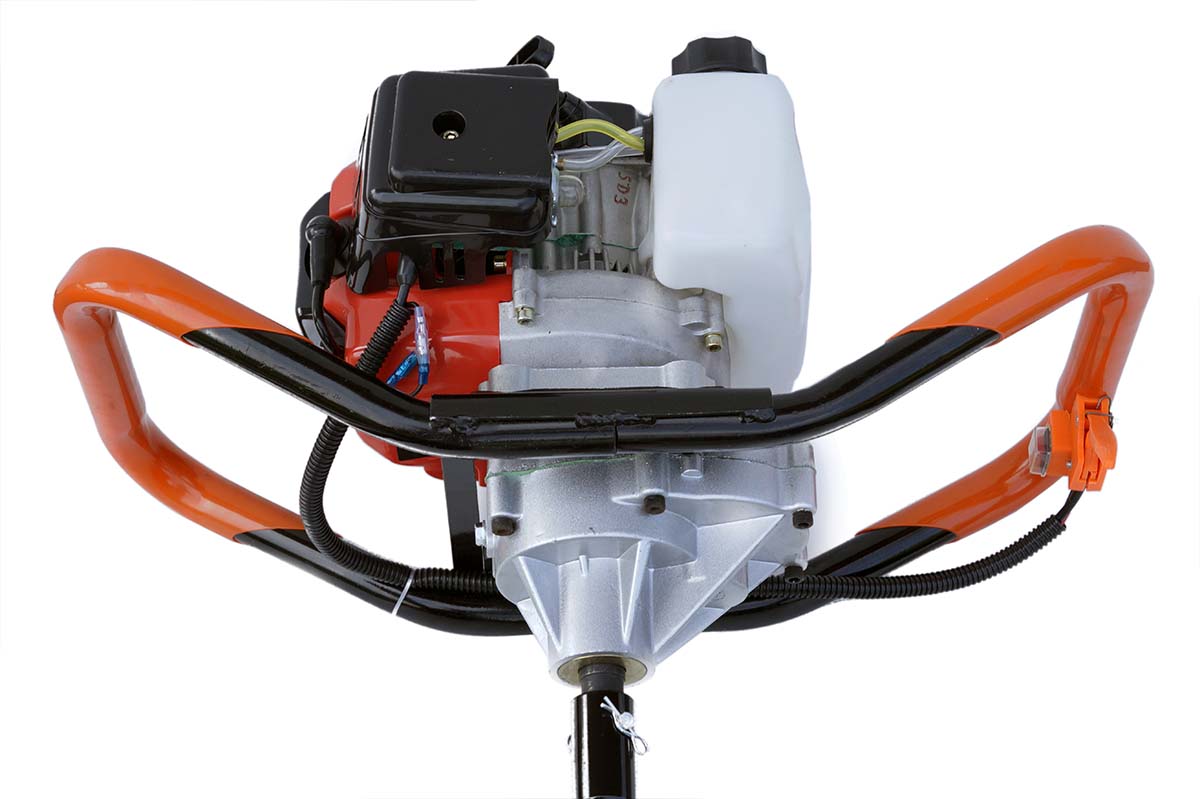Ручки, покрытые мягкой резиной, обеспечивают больший комфорт работы. Отличный редуктор, надежная работа. Бензиновая буровая установка с надежным двигателем мощностью 6,5 л.с.