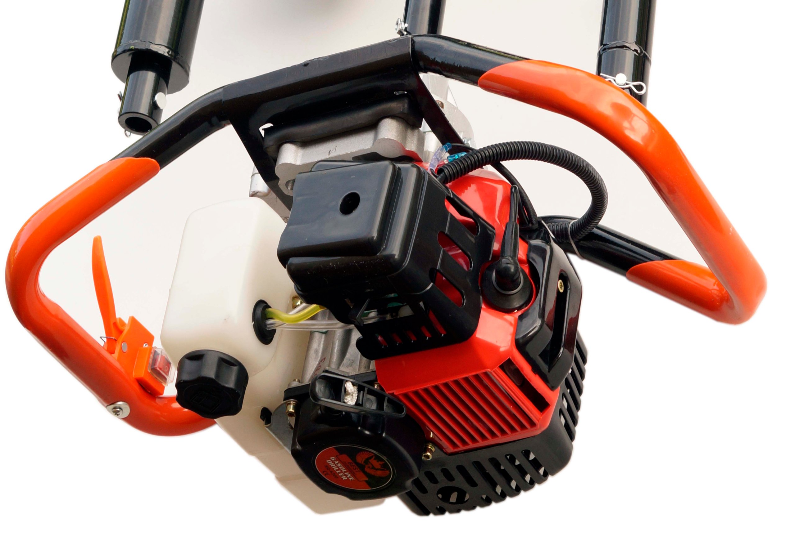 Устройство предназначено для работы на заборах и строительных работах. Очень прочная передача, позволяющая вертикальное и горизонтальное бурение. Поршень на двух кольцах, шатун отбалансирован Прочная конструкция. Центробежная муфта для безопасной работы. Он будет использоваться для всех работ по ограждению, он также идеально подходит для посадки, облесения, часто используется на фермах, а также в компаниях, занимающихся ограждением.