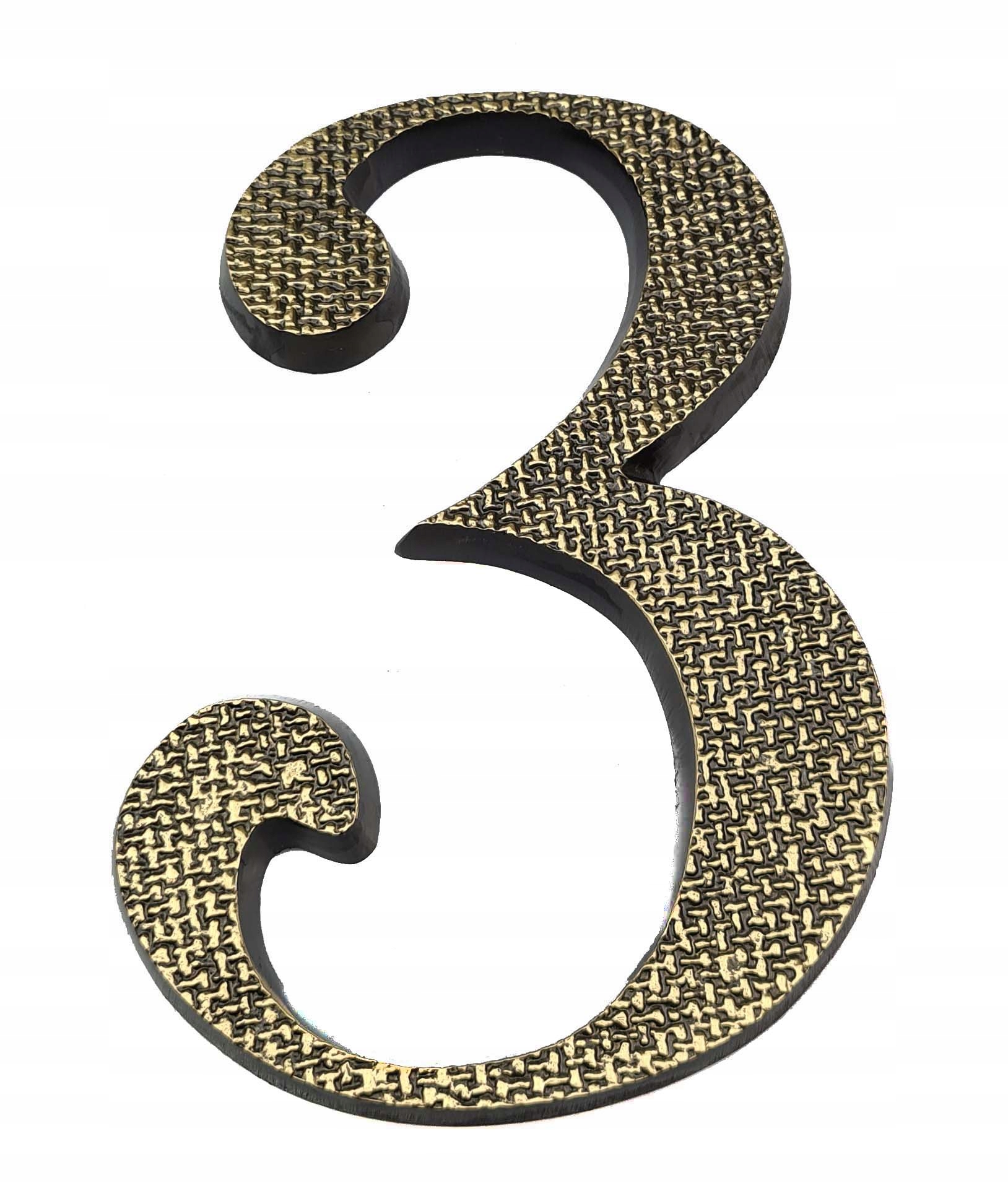 Цифра 3 для дома 20 см Патина (золотисто-черный)
