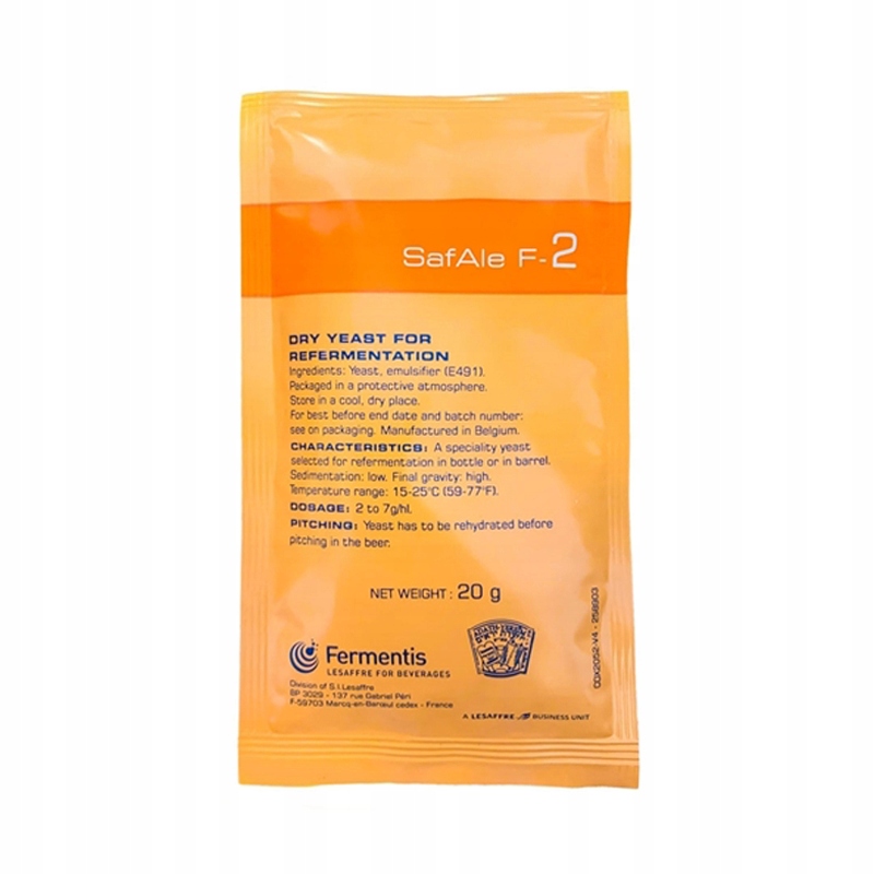 Safbrew™ F-2 имеет нейтральный аромат и хорошо усваивает глюкозу, фруктозу, сухорозу и мальтозу. Хорошая переносимость высоких концентраций алкоголя в пиве - до 10% об.