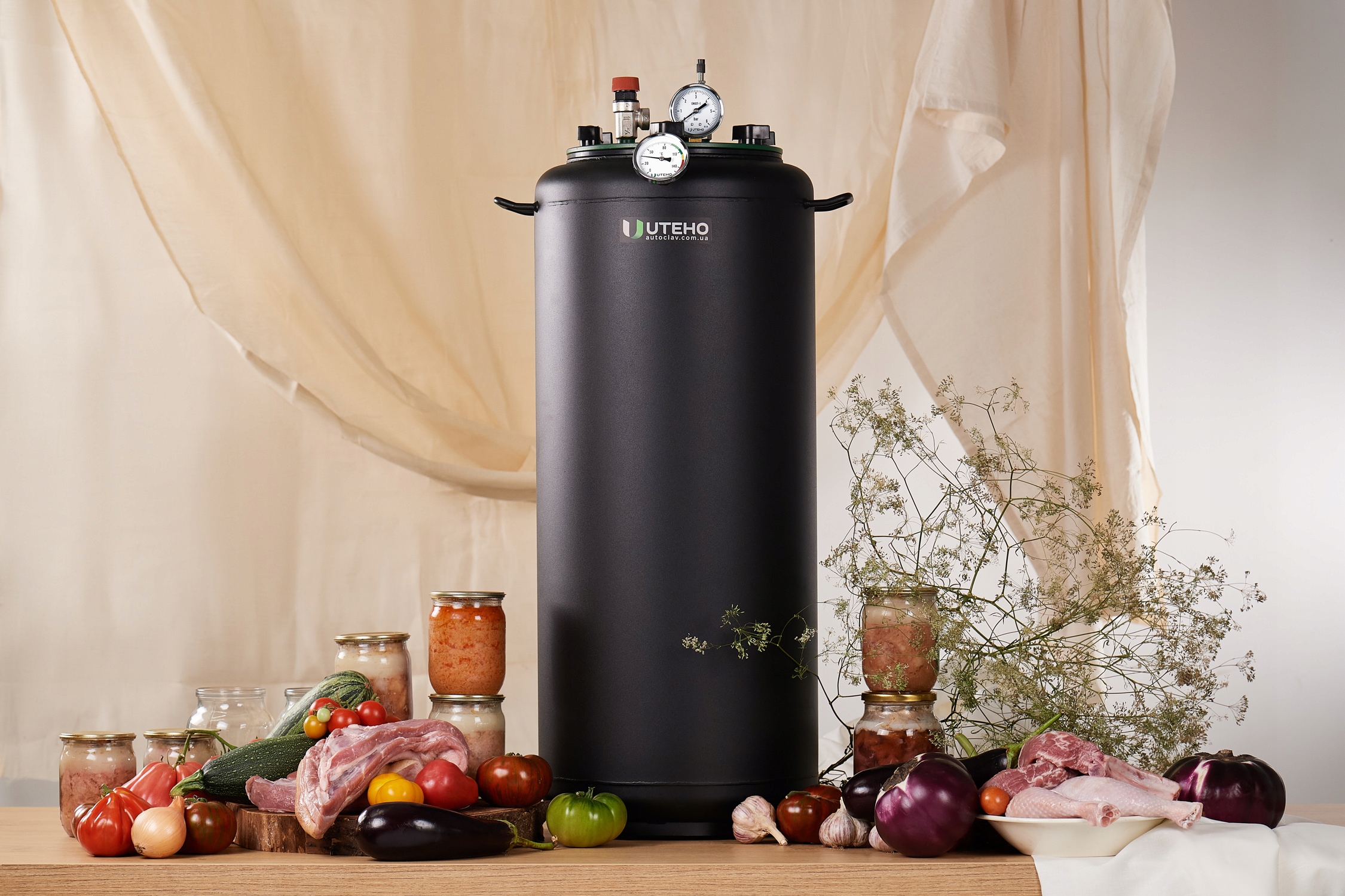 Домашний автоклав «ЮТех-40» — это современное устройство из черного металла для стерилизации и приготовления консервов. Он нагревается от внешнего источника тепла и идеально подходит для домашнего использования. Автоклав оснащен аварийным клапаном, что делает процесс приготовления консервов безопасным.