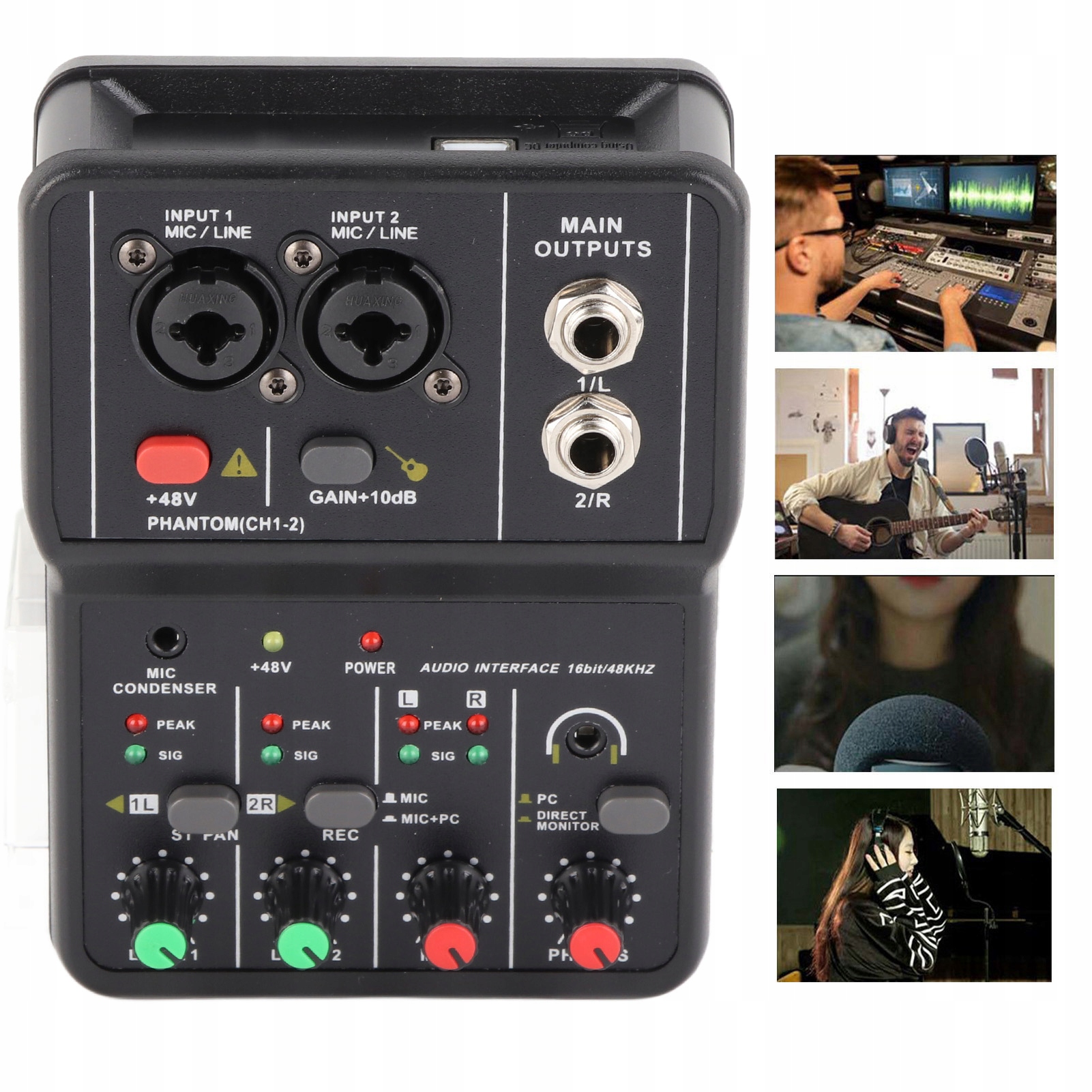 2-канальный USB-аудиомикшер с фантомным питанием 48 В, компактный микшерный пульт для записи музыки, домашнее караоке, интернет-караоке