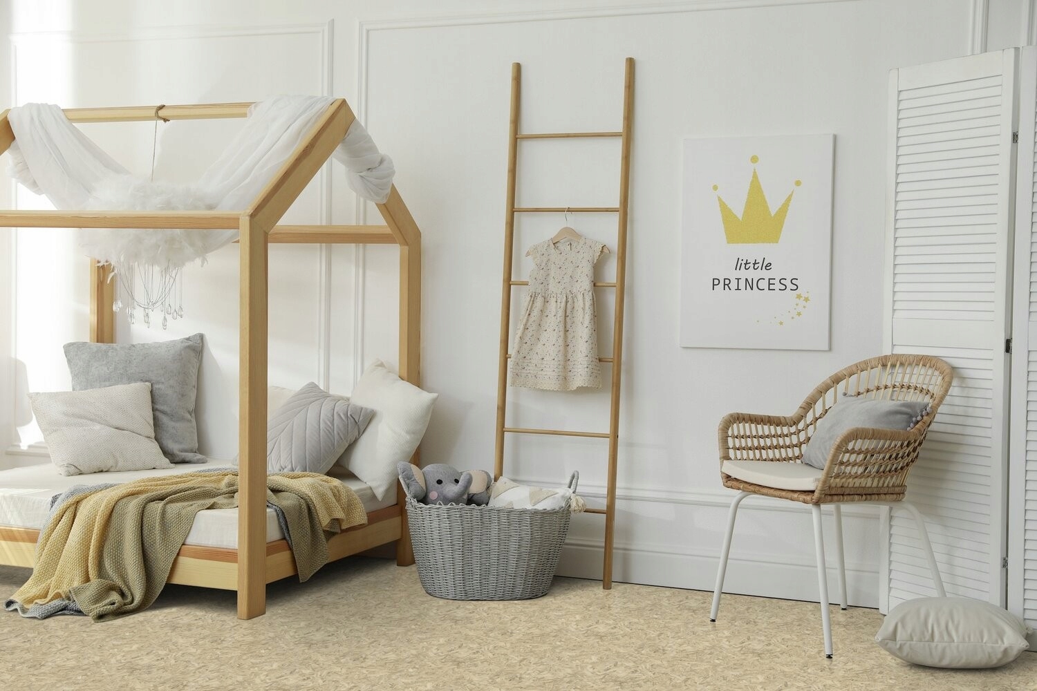 Эластичный ковролин с рисунком, имитирующим плиту OSB. Пол изготовлен из поливинилхлорида, также известного как ПВХ. Предлагаемый ковролин толщиной 2,5 мм и слоем износа 0,35 мм предназначен для жилых помещений с высокой интенсивностью движения и объектов коммунального хозяйства со средней интенсивностью движения. Прочный – устойчив к вмятинам, изломам и ультрафиолетовым лучам. Ковер имеет войлочную основу, что обеспечивает хорошую звукоизоляцию помещения.