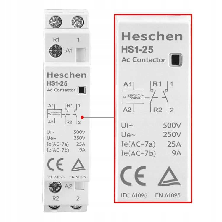 Домашний контактор AC 25A 2 Polar Heschen HS1-25