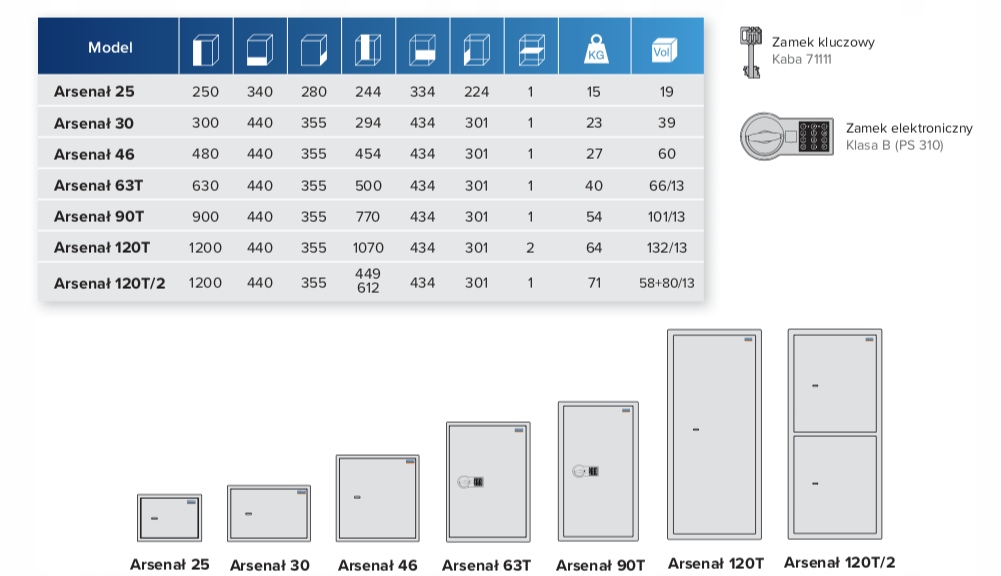 Другие сейфы серии Арсенал (S1) для пистолетов в нашем предложении (каждый из следующих сейфов доступен также в электронной версии) ):