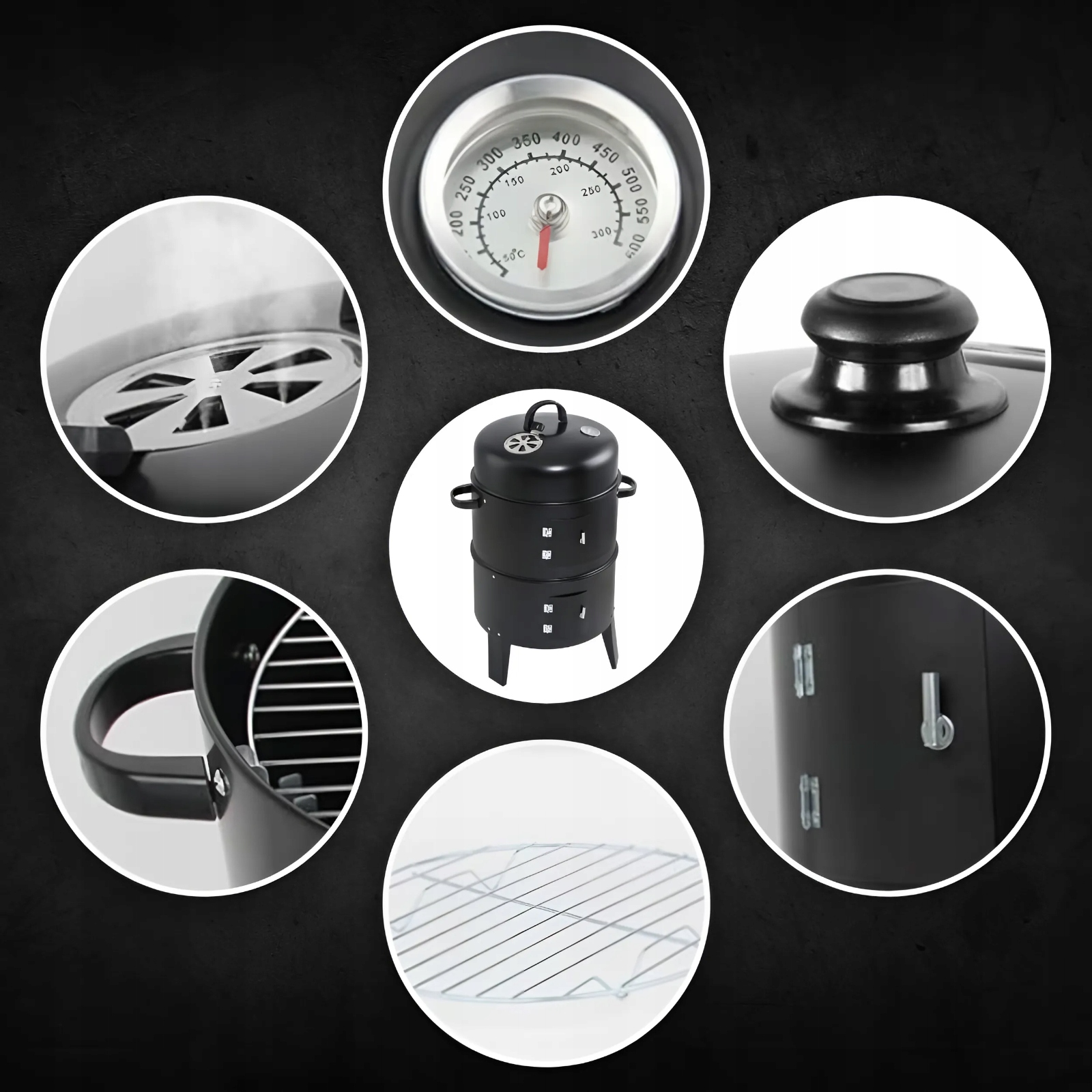 ✅Встроенный термометр: б>Термометр, контролирующий температуру внутри гриля, позволяет точно контролировать и регулировать температуру, что является ключом к достижению идеальных результатов приготовления на гриле и копчения. Благодаря этому вы можете легко регулировать температуру в зависимости от типа блюд, которые вы готовите.