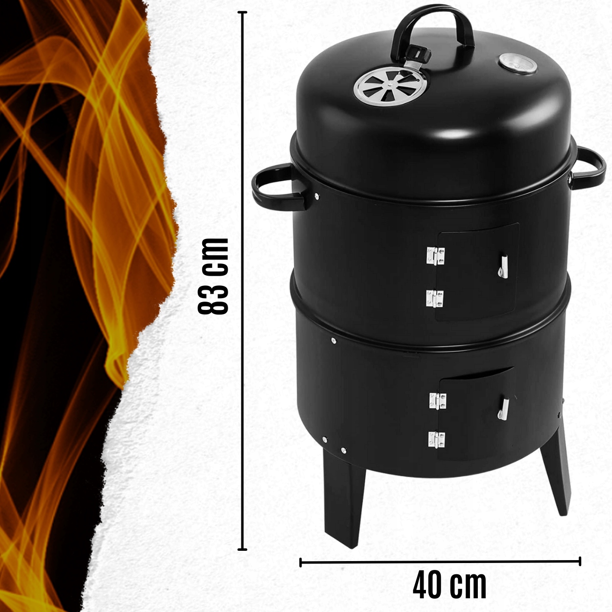 ✅Две дверцы для облегчения доступа:Два отдельных входа обеспечивают легкий доступ к внутренней части гриля без необходимости разбирать всю конструкцию. , что особенно полезно при длительном копчении или когда нужно добавить больше угля или дров.