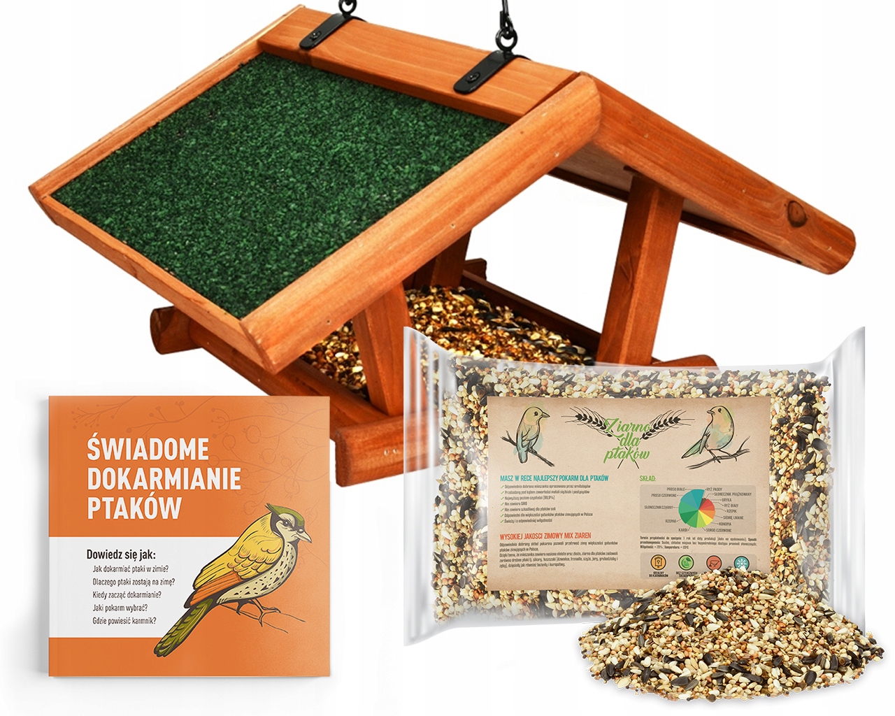- В набор входит 1 кг лучшей озимой зерносмеси для птиц и руководство по осознанному кормлению птиц!