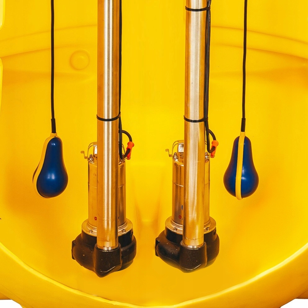 Полная насосная станция с двумя педролло -тритусными насосами, каждый из которых с закаленной нержавеющей сталью AISI 431. Даже потребление и надежность, а также с большим спросом, оба насоса начинаются одновременно, обеспечивая более быструю перекачку сточных вод.