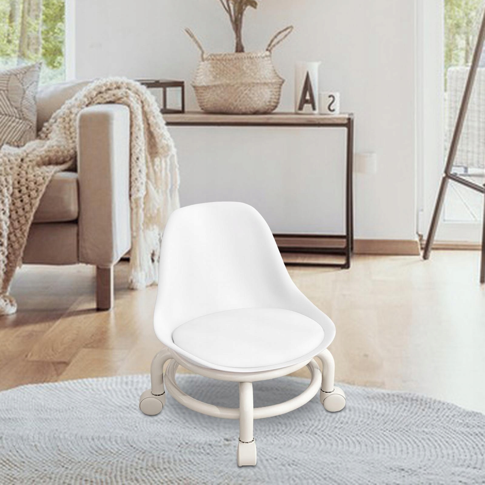 [Удобство и поддержка] Низкий табурет на колесиках с мягким сиденьем и спинкой для максимального комфорта и поддержки при длительном сидении.