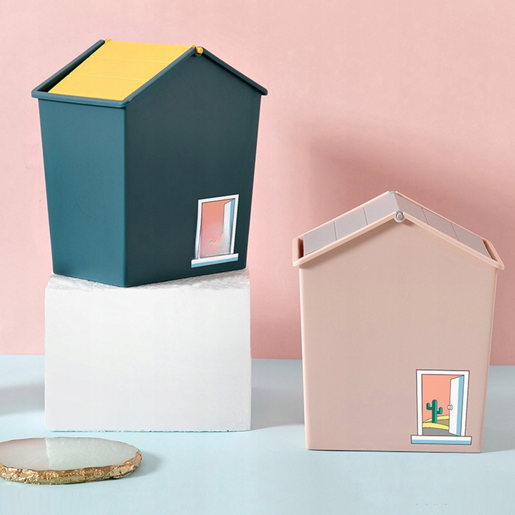Домашний мусорная мусорная корзина розовая кухня удобная мусор на рабочем столе.