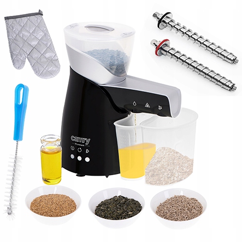 Маслоотжималка CAMRY CR 4011 — инновационное устройство, которое позволит вам самостоятельно производить масло из любимых семян и орехов. Масло – очень важный ингредиент на нашей кухне, полный питательных веществ, который мы добавляем в салаты, блюда и используем для жарки. Масла некоторых семян и орехов также обладают оздоровительными свойствами, помогая нам заботиться об иммунитете нашего организма, бороться с некоторыми заболеваниями и улучшать состояние кожи, ногтей и волос. Поэтому возможность холодного отжима собственного масла должна заинтересовать людей, которые ценят высокое качество и натуральность продуктов, которые они используют. Преимуществом устройства является простота управления всего тремя кнопками. Он способен выжать 200 г семян за 6-12 минут, что позволяет быстро приготовить выбранный вид масла непосредственно перед приготовлением блюда. Можно выжимать: семена чиа, льняные семечки, золотые семечки, семечки подсолнечника, арахис, грецкие орехи, миндаль, кешью, бразильские орехи, кедровые орехи, фундук, тыквенные семечки, мак, кунжут, фисташки. Контейнер вмещает около 700 г семян. В комплект входит пресс-шнек для крупных и мелких семян, что позволяет использовать большинство масличных растений и орехов. Дополнительно в комплект входят термоперчатка, щеточка для чистки и масляный фильтр