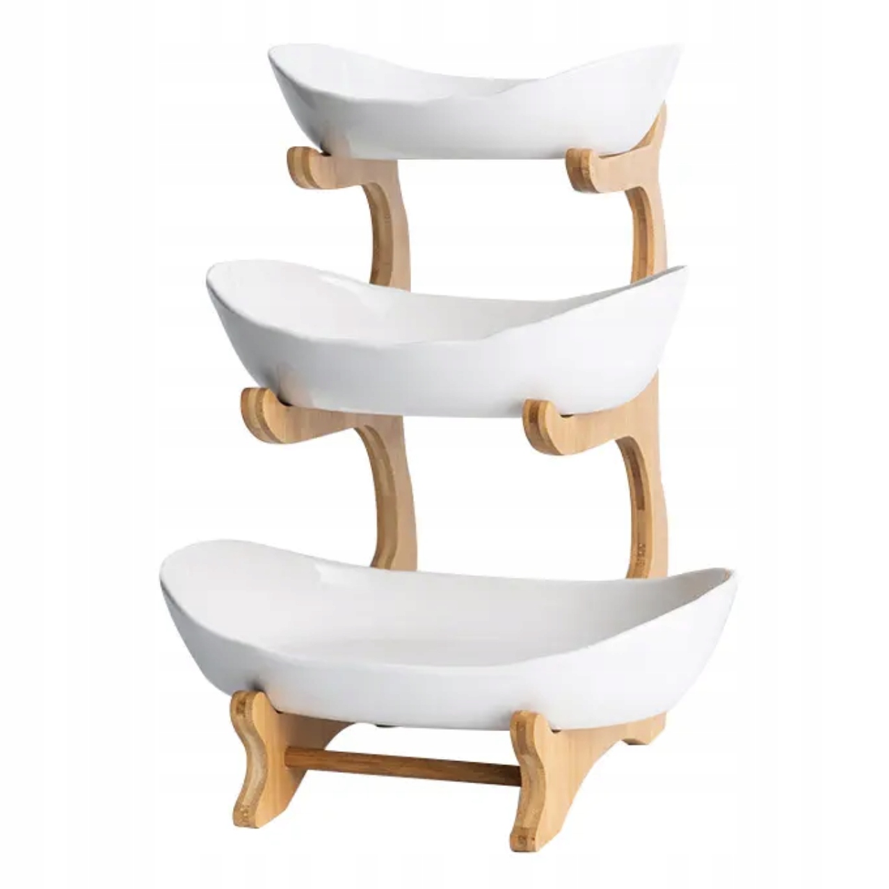 Наш поднос для фруктов позволяет не только эстетично и практично сервировать различные фрукты и закуски, но и создает привлекательные визуальные композиции на столе, способные положительно повлиять на восприятие блюд и повысить аппетит. Три уровня позволяют избежать смешивания вкусов и в то же время облегчают поддержание порядка и чистоты при сервировке, являясь функциональным и декоративным дополнением кухонного оборудования.