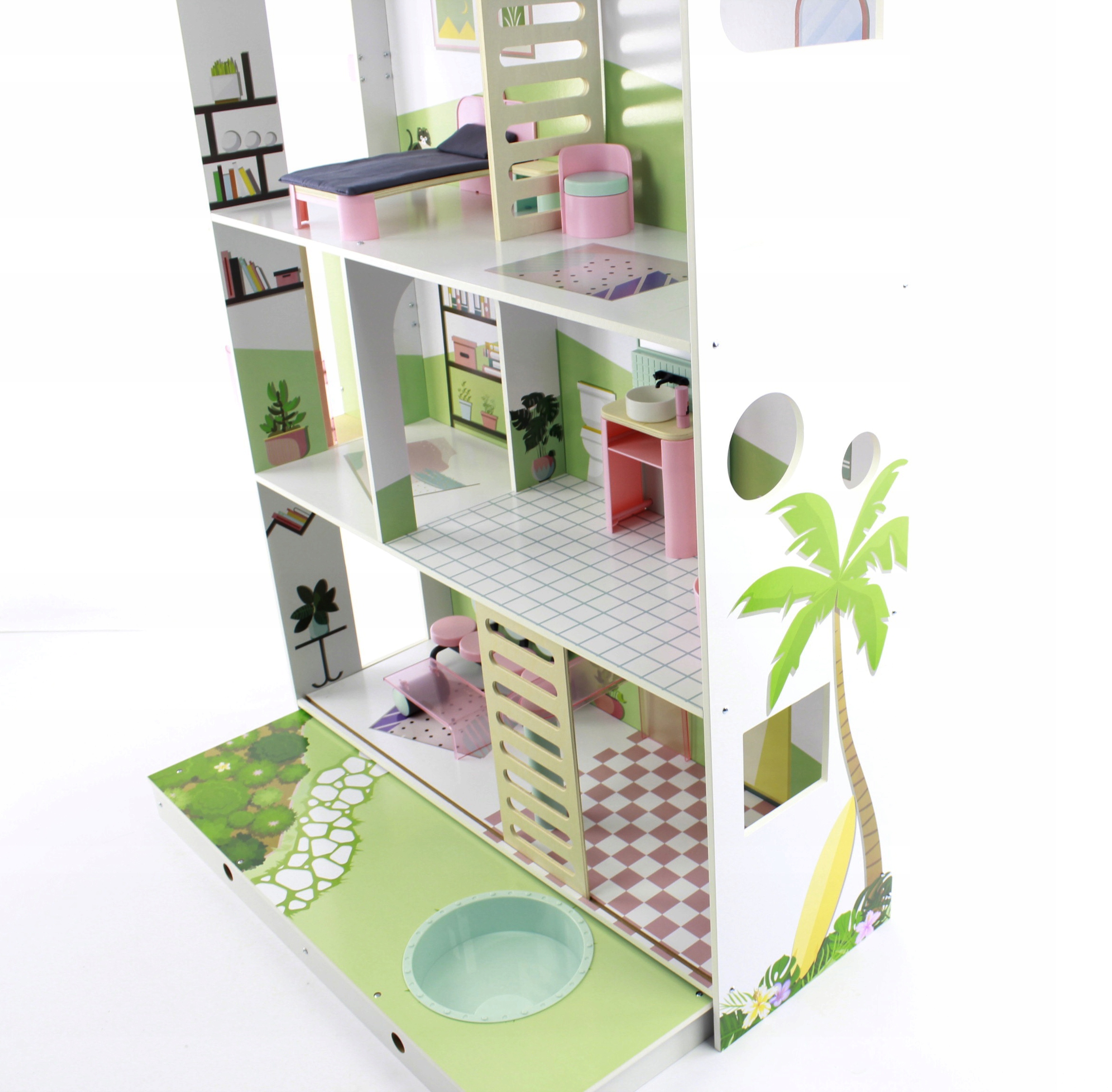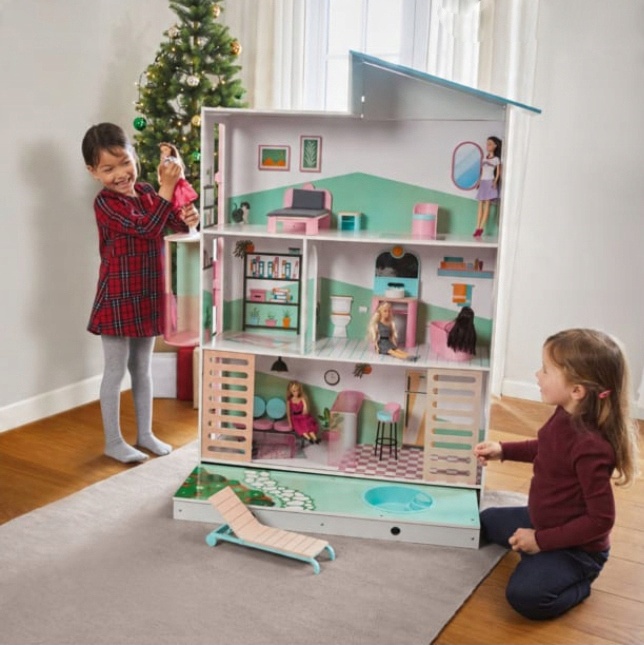Дом кукол с подвижным лифтом, террасой, бассейном h1> и набором мебели h1>