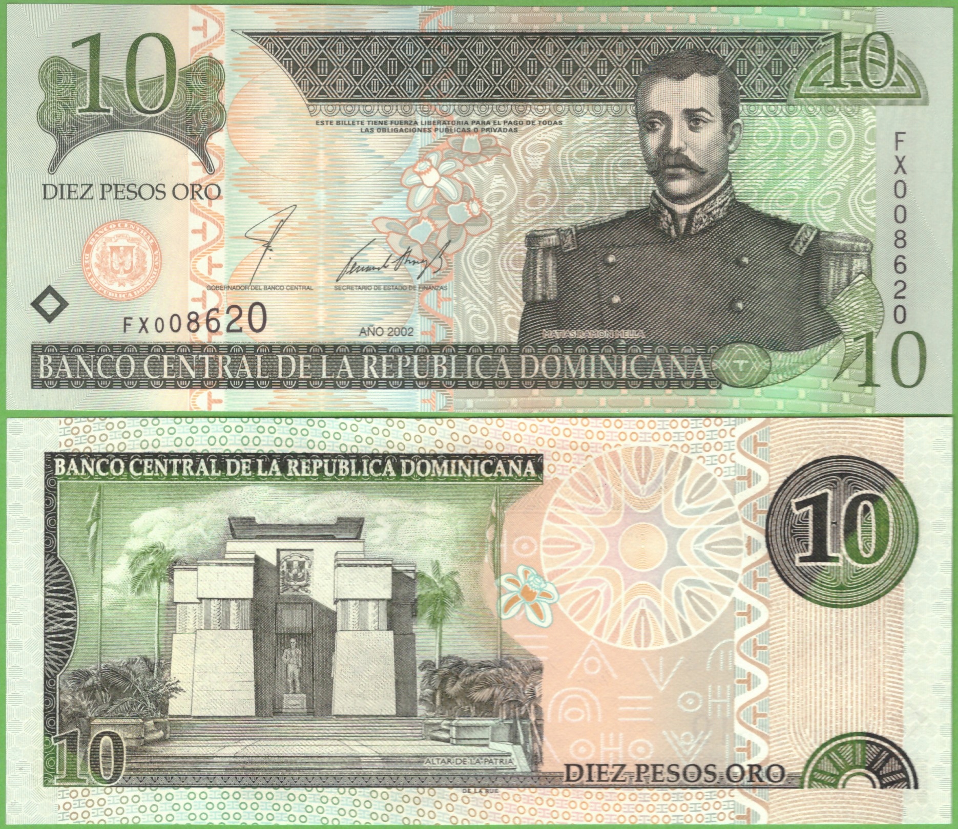 ДОМИНИКАНСКАЯ РЕСПУБЛИКА 10 ПЕСО 2002 года P-168b UNC
