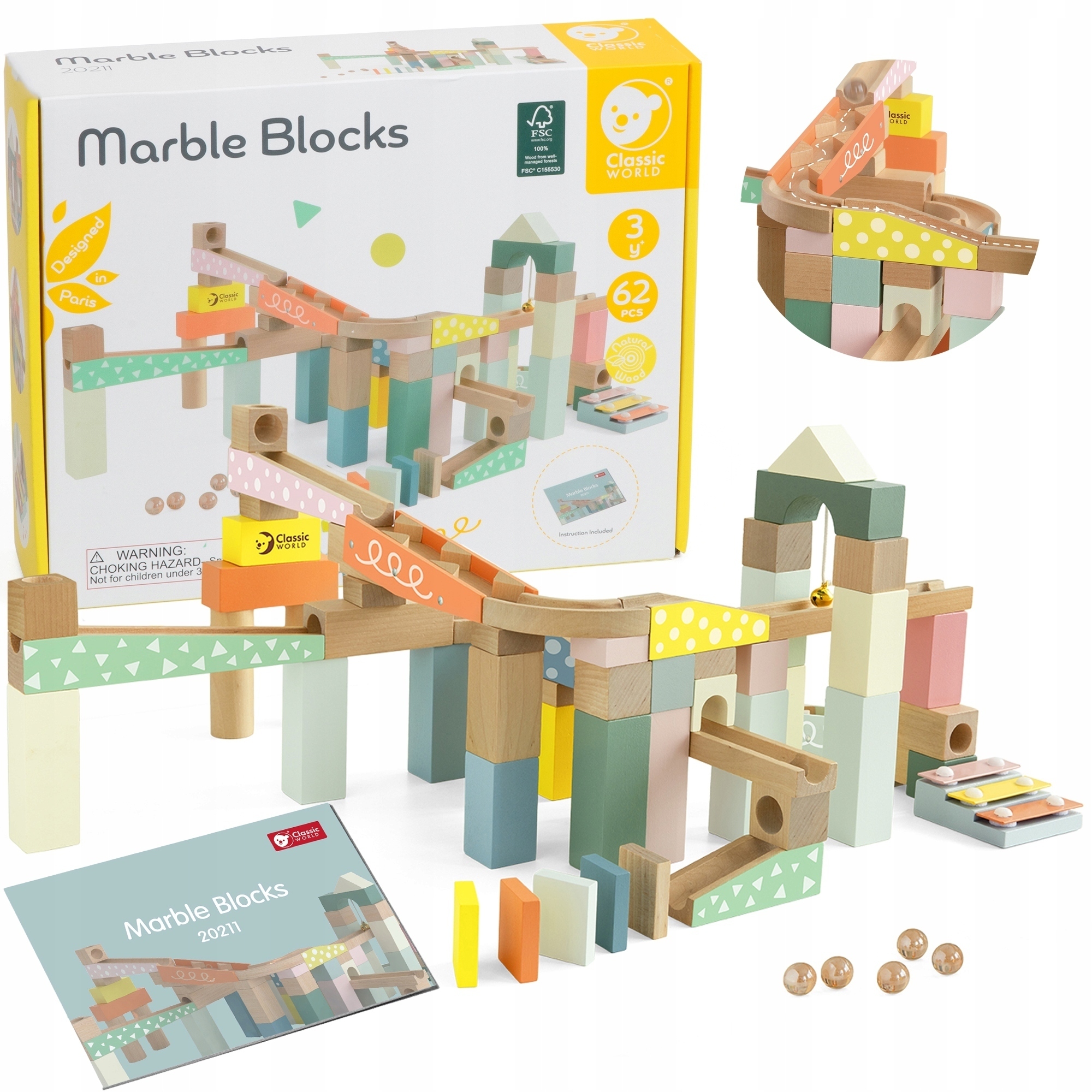 деревянные блоки и от бренда Classic World - прекрасная пастельная набор для построения мраморной дорожки, который стимулирует детей Craitivality и концентрация . Уникальные пастельные цвета и Отсутствие острых краев позволяет безопасно играть, учит детей, как складывать и строить ряд уникальных треков и конструкции. Это фантастическая игрушка для всей семьи , давая много возможностей творческого веселья при организации треков по -новому.