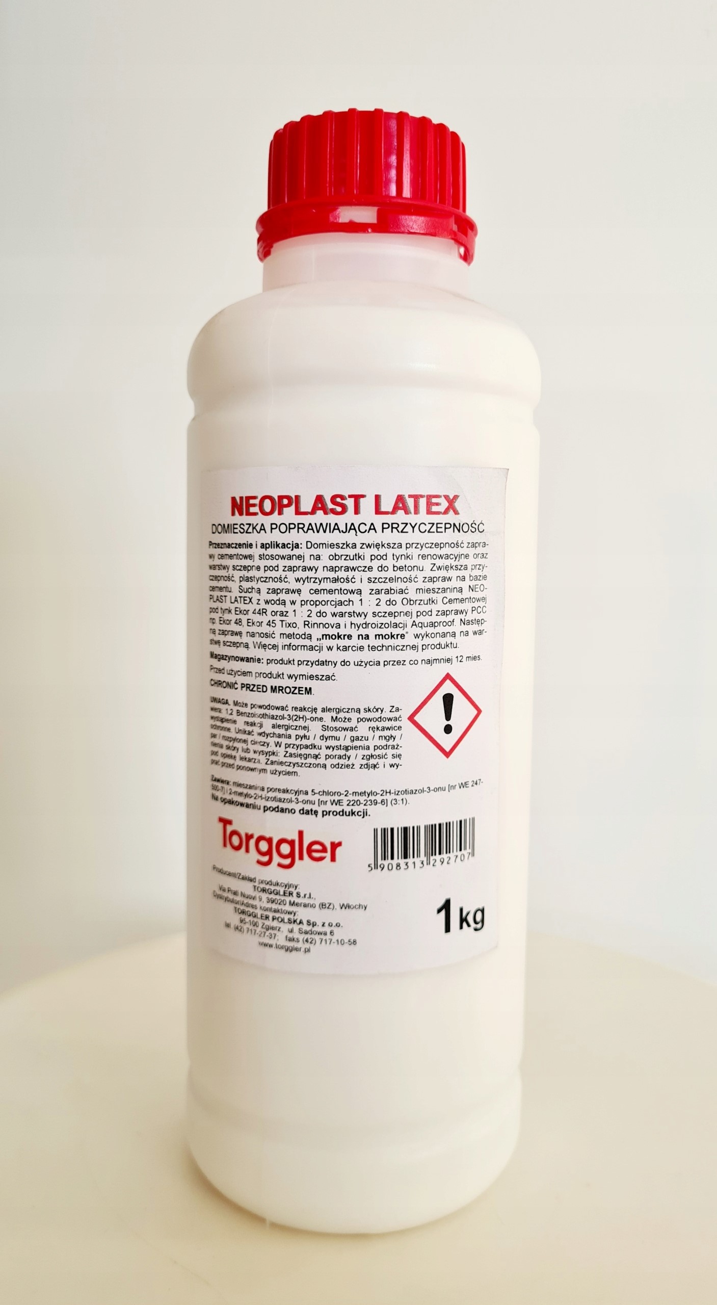 приспособление, которая улучшает адгезию цементированных растворов, упаковка новообразований газет. Он используется для ремонта, выравнивания, каменной кладки, штукатурки, клейких растворов и бетонных модификаций и других масс на основе цемента - для увеличения адгезии к подложке, пластичности и улучшения параметров прочности. Через химическое связывание сополимеров с землей сильно (2-3 раза) увеличивает адгезию обычных цементных растворов или бетона к земле. Кроме того, примеси позволяет уменьшить количество заработанной воды в смеси бетона или раствора (при сохранении той же консистенции), благодаря которой значительно уменьшается водонепроницаемая и морозная сопротивление, а также возможность трещин и царапин также уменьшается. Благодаря примесь качество раствора после значительного улучшения. Свежий раствор становится более пластиковым и тиксотропным, что облегчает применение. Бетон после укрепления характеризуется повышенной прочностью сжатия и изгиба. Бетонная прочность истирания также увеличивается более чем 2 раза. После применения примеси, штукатурка, раствор или бетон становятся более устойчивыми к соли, морозу, маслам и бензину. Примесь латекса новообразований особенно рекомендуется для изготовления штукатурных початок для реконструкции и обычных пластеев, изготовленных на сложных подложках, деформационных слоев в реконструкции бетона, водонепроницаемых начинок, керамической оболочки на трудных подложках, тонкости заполненных наполнителя, бетонные полы для размытых, полим-тряси Подходит для использования внутри и за пределами зданий.