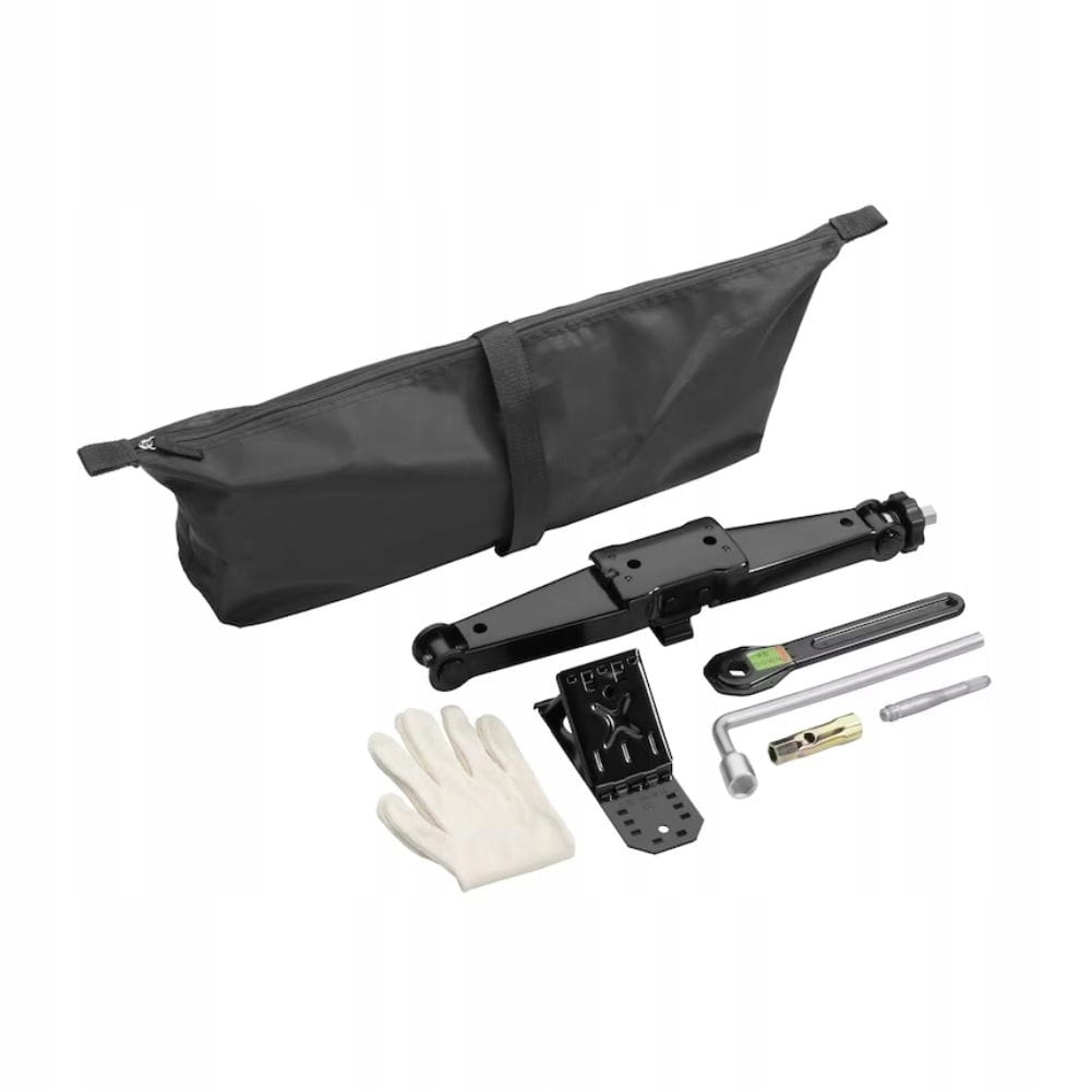 Автомобильный набор инструментов — черная сумка, содержащая следующие инструменты: домкрат, накидной гаечный ключ, центрирующий болт колеса, противооткатные упоры, проставочную пластину, перчатки.