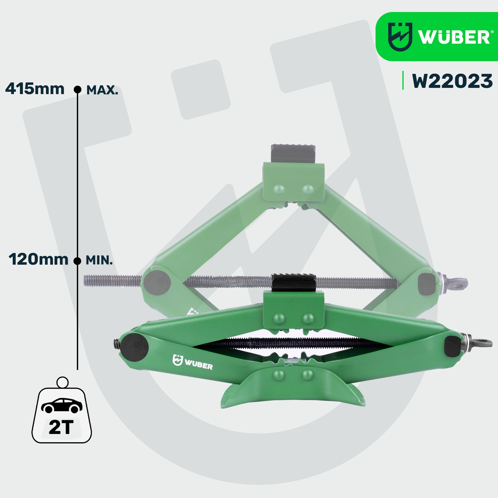 Грузоподъемность до 2 тонн ► Высота подъема до 415 мм ► Минимальная высота 120 мм ► Компактные размеры ► Прочная конструкция ► Резиновая заглушка ► Ключ с трещоткой ► Колесный ключ