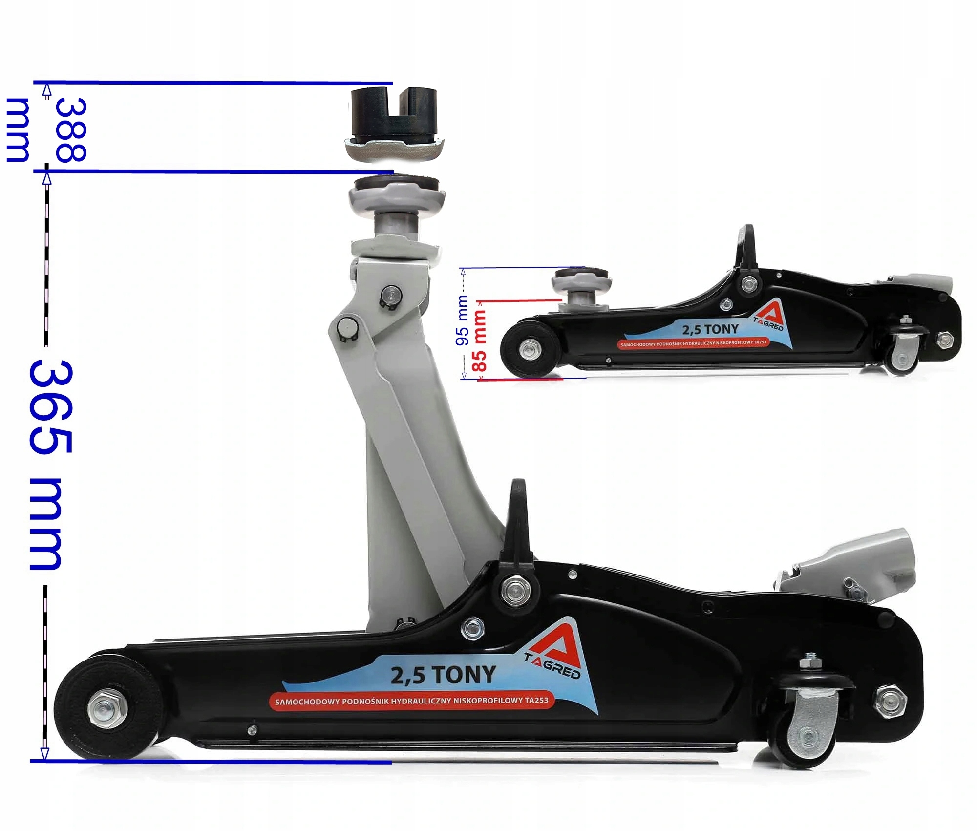 ПРОФЕССИОНАЛЬНЫЙ НИЗКОПРОФИЛЬНЫЙ АВТОМОБИЛЬНЫЙ ПОДЪЕМНИК 85-365 мм 2500 кг