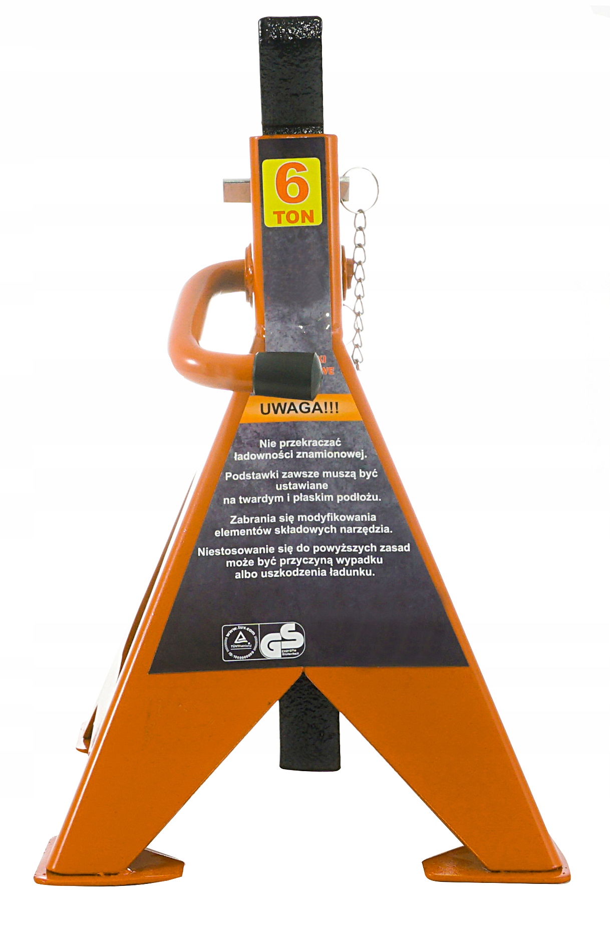 Специальный, дополнительный замок в виде штифта (штифта) защищает храповой механизм от непреднамеренного опускания опорная колонна. Штифт оснащен стальным тросом, прикрепленным к корпусу эстакады, что предохраняет его от потери.