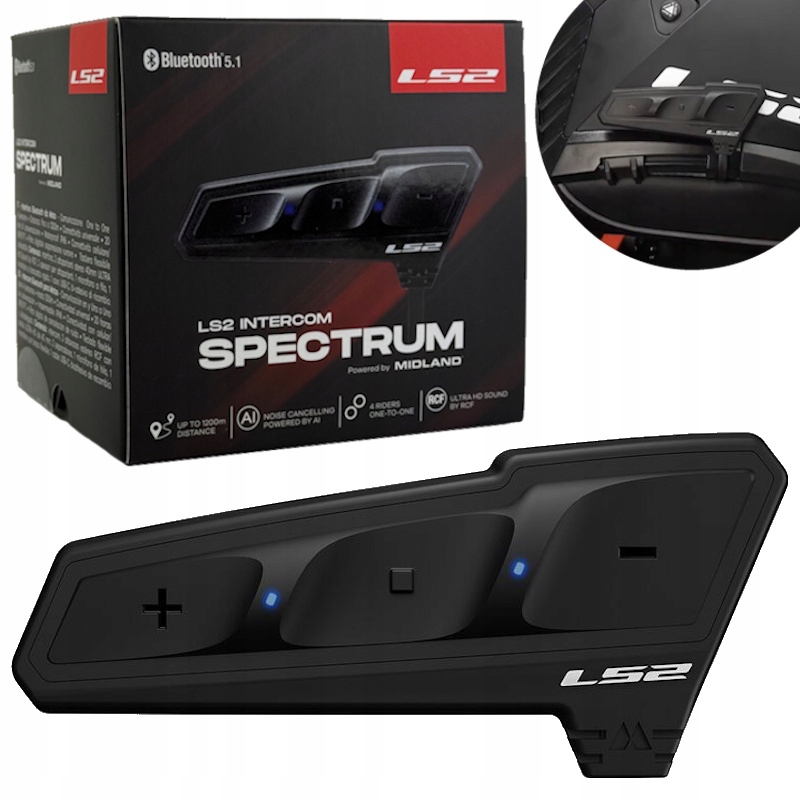 Усовершенствованная система связи Bluetooth, разработанная в сотрудничестве с Midland, посвященным шлемам LS2. Он предлагает превосходное качество звука RCF, подключение к интерком для четырех мотоциклистов и интеллектуальное снижение шума. Благодаря водонепроницаемой конструкции и широкой совместимости, Spectrum LS2 обеспечивает надежное соединение во время каждого путешествия.