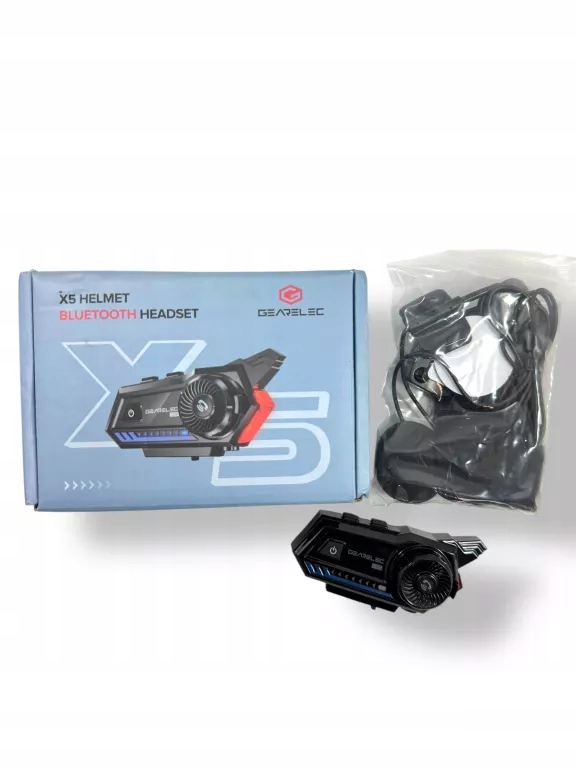 Intercom GearElec x5 -это устройство для мотоцикла с Bluetooth Connectivity. Это обеспечивает связь на расстоянии до 500 м и получает подключения без использования рук. Он имеет встроенное радио -радио и может подключиться к двум телефонам. Устойчив к дождю и пыли (IP65), поэтому он работает в разных условиях погоды. ---------------------------------------------------------------------------------------------------