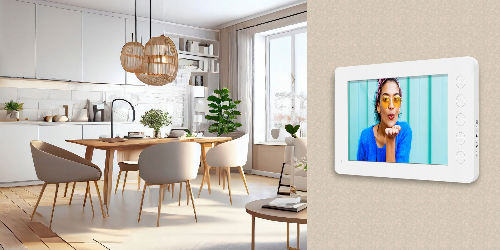 Монитор монитор с функцией громкой связи оснащен 7-дюймовой матрицей с разрешением 800х480 пикселей. Благодаря ручкам регулировки, расположенным на правой стороне корпуса, можно регулировать громкость разговора, яркость и насыщенность изображения.