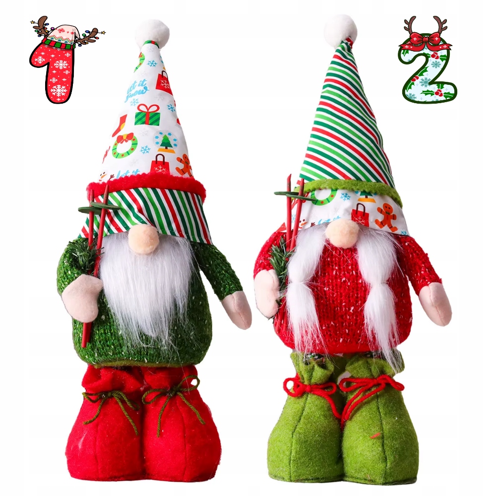 Телескопический лыжник «Рождественский гном» | Регулировка высоты 30-54 см | Зимнее украшение