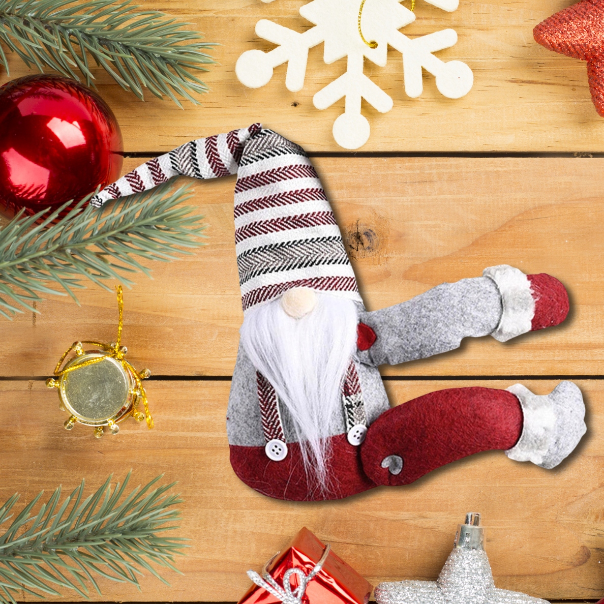 Гномик имеет подвижные элементы, что позволяет размещать его как в сидячем, так и в висячем положении. Вы можете адаптировать его внешний вид в соответствии со своими предпочтениями, создавая уникальные рождественские композиции.