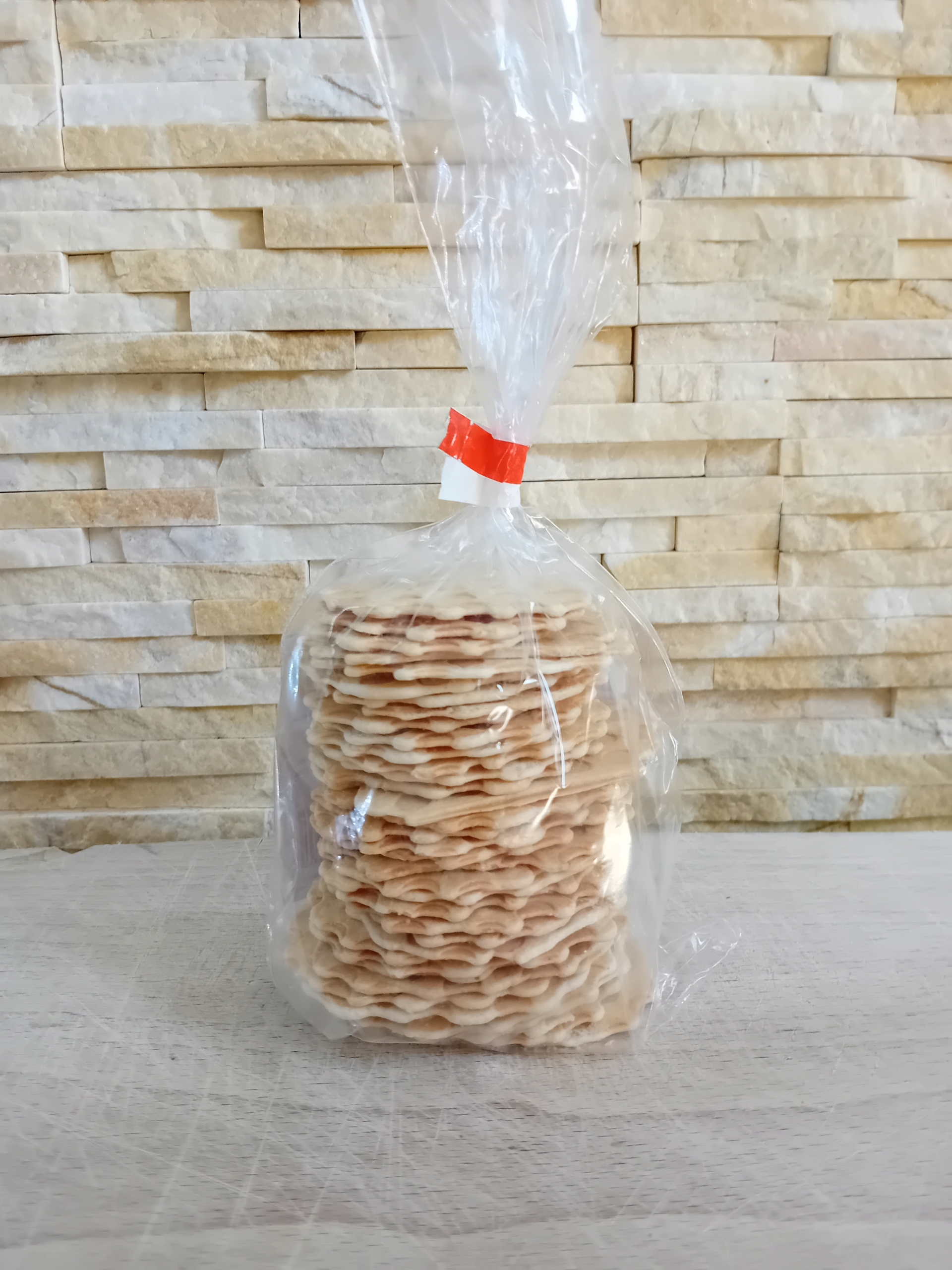 Ингредиенты: Мука пшеничная, вода, сливочное масло 82% жирности, соль, уксус, сахар, ванильный сахар, разрыхлитель - сода пищевая, цедра апельсина (0,37%), корица (0,017%) p>