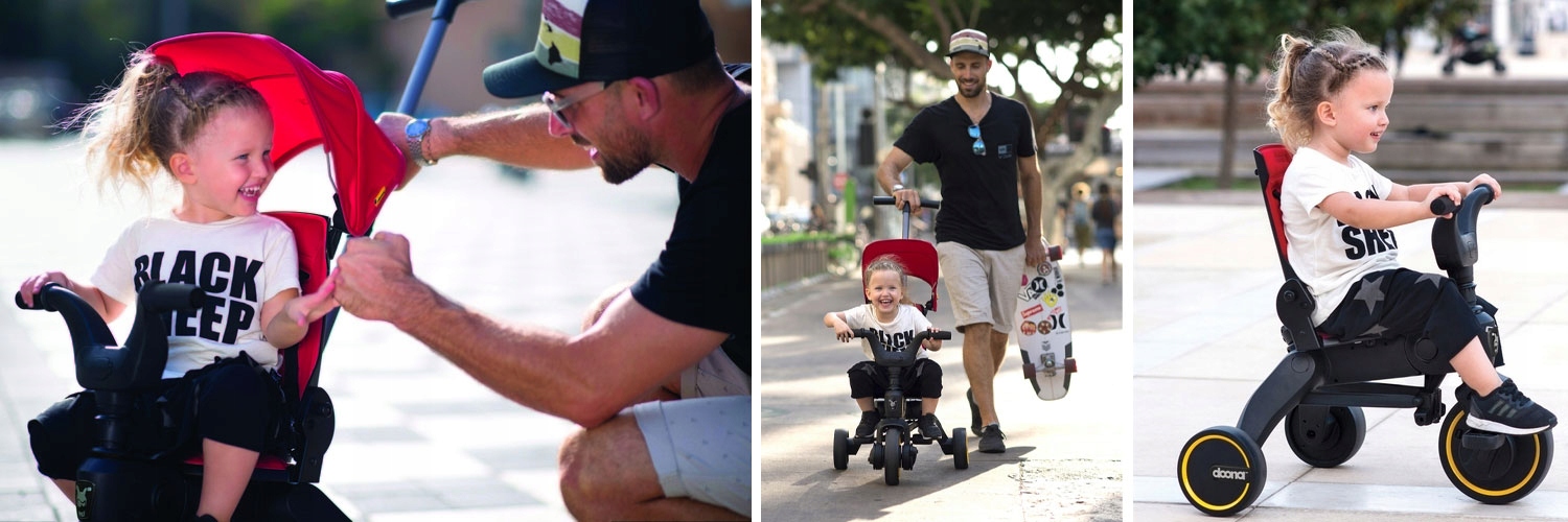 Велосипед впервые использовался в виде велосипеда с барьером, на котором ребенка направляет родитель. Затем избавляемся от элементов один за другим, чтобы со временем малыш мог самостоятельно пользоваться велосипедом Doona Liki Trike S3 5в1.