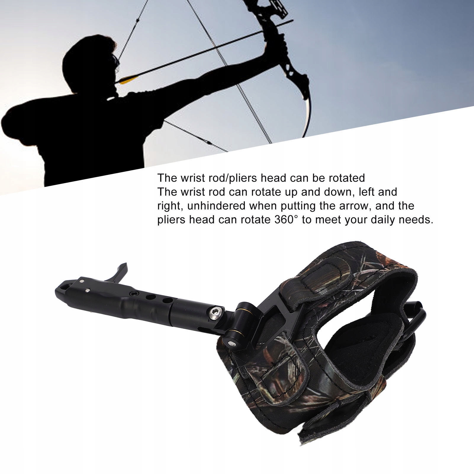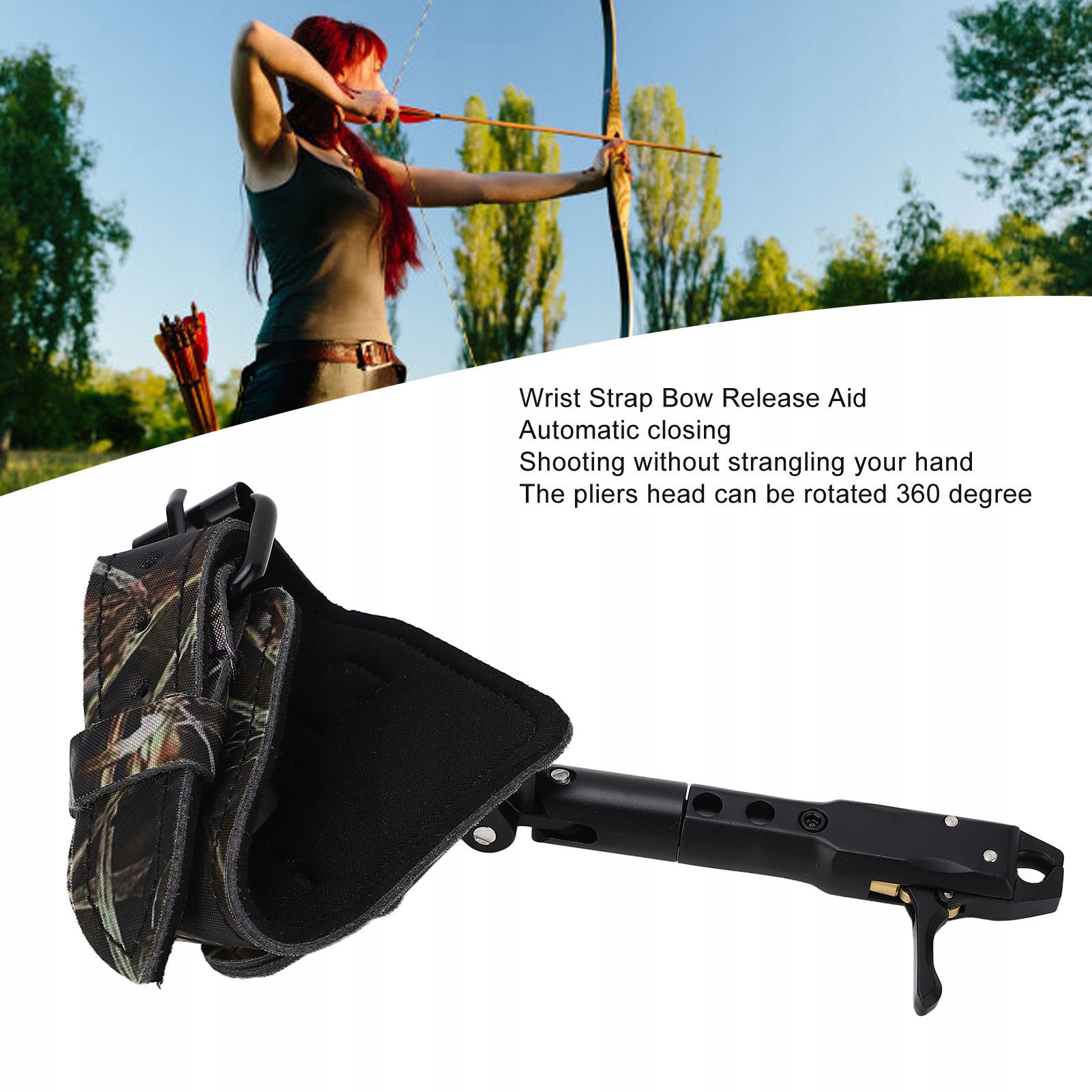 1. Повышение точности: помощь в выпуске лука для стрельбы из лука значительно повышает точность стрельбы. Большой палец отпускает стрелу, работа хорошая, руки не повреждаются. 2. Поручень и ремешок на запястье. Длину поручня можно регулировать тремя скоростями, чтобы обеспечить разную длину, а ремешок также можно отрегулировать в соответствии с вашими потребностями. 3. Подходит для всех возрастов: триггер для стрельбы из лука подходит для всех возрастов и очень подходит для начинающих и опытных лучников. 4. Материал изделия: составной фиксатор дуги изготовлен из алюминиевого сплава и искусственной кожи, который отличается прочностью и долговечностью. 5. Средство для разъединения: Композитный расширитель со шкивом является средством для разъединения. Это незаменимый предмет для съемки.