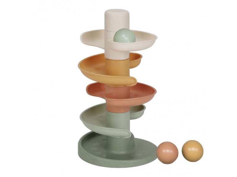 Понаблюдайте вместе с ребенком, как шарики катятся один за другим! Трасса в нежных пастельных тонах легко собирается из пяти частей и начинается веселье.