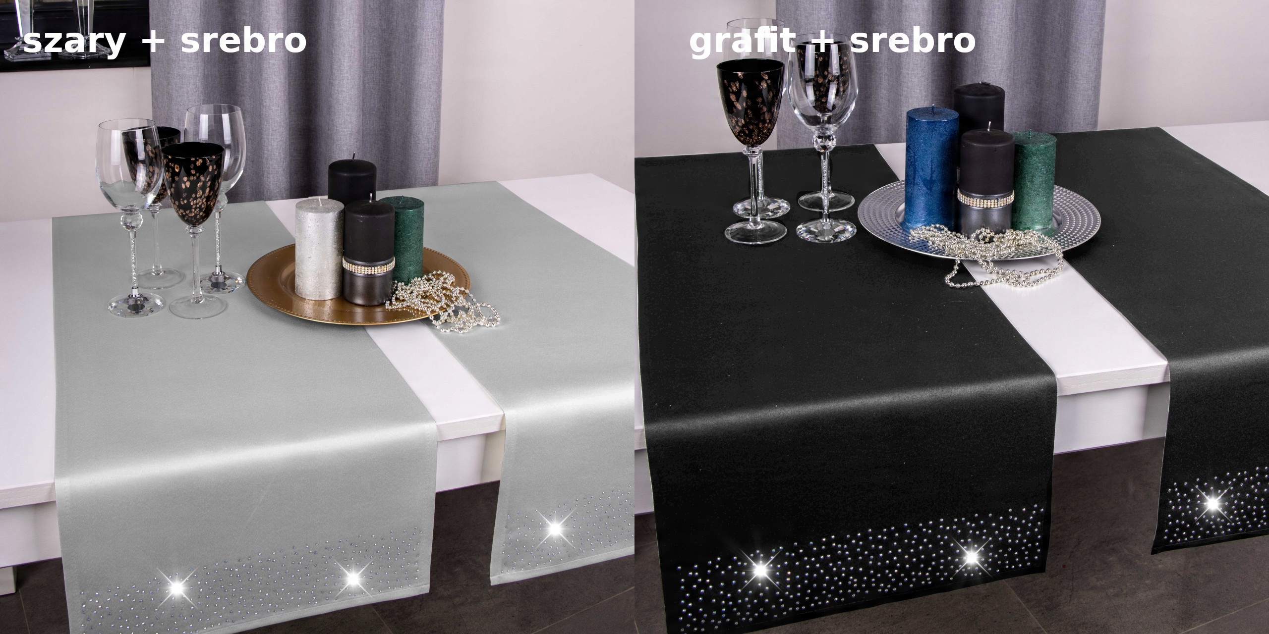 BRILLANT — уникальная коллекция атласных скатертей, отделанных эстетичной подложкой толщиной 1 см, с обоих концов украшенных современным узором из стеклянных кристаллов, переливающихся радужными или подобранными в тон золотом. к ткани.